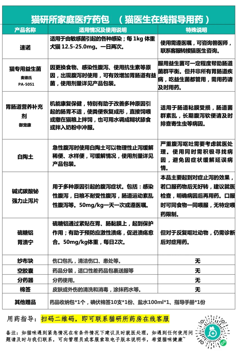 猫研所 猫咪家庭常用应急小药包 呕吐腹泻软便打喷嚏咳嗽流眼泪