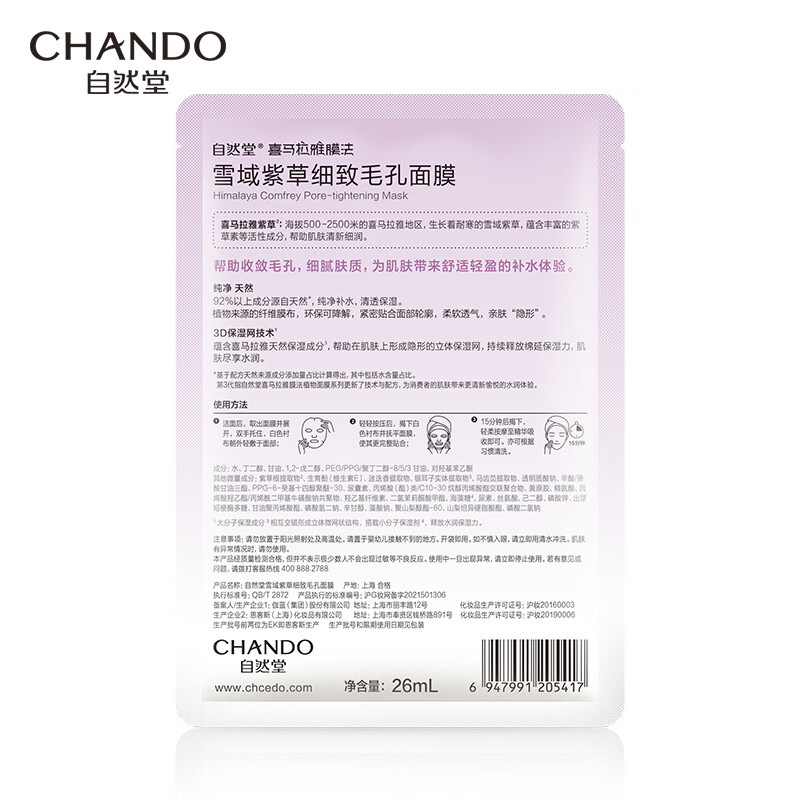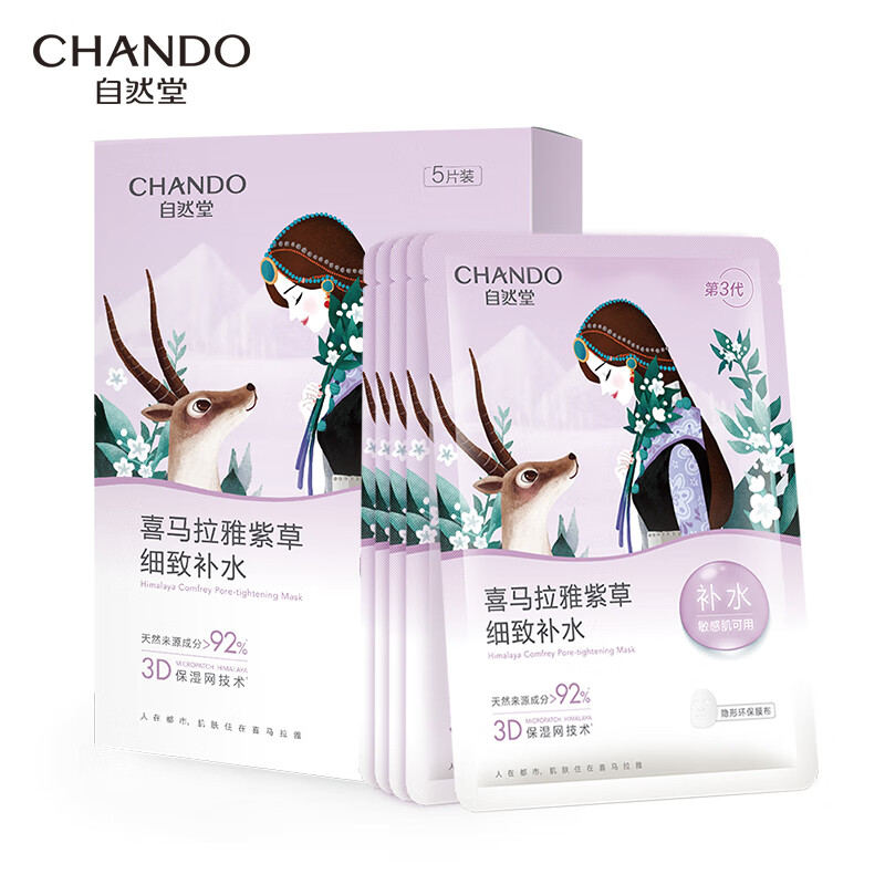 自然堂喜马拉雅雪域紫草细致毛孔面膜26ml*5片/盒*3