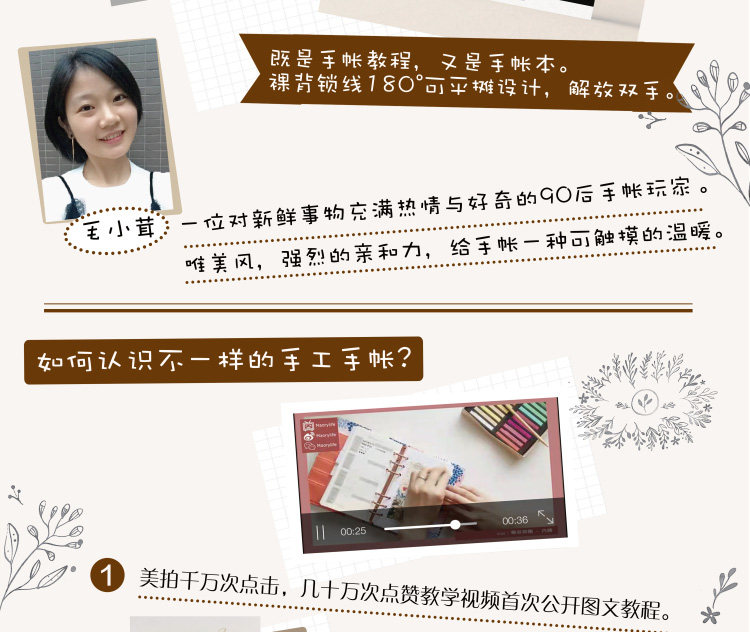 毛小茸,美拍认证手工达人,知名人文艺术博主,NEVER时尚生活馆签约达人,丝迄今已超过人。 n一位对新鲜事物充满热情与好奇的90后手帐玩家。唯美风,强烈的亲和力,给手帐一种可触摸的温暖。 |