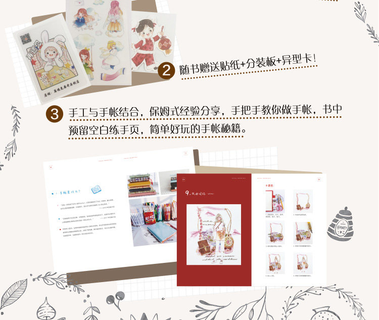 本书结合了手帐和手工一些新鲜玩法,其中有手帐方面主要有打表式的时间管理,手工方面主要是创作时可以快速掌握的拼贴技巧,以及UV胶和手帐结合的工艺。同时,还给读者留了在书上打版、涂色、拼贴的空白练手页。将手工和手帐结合后,融合手帐周边的衍生形式,让读者在快乐中分享手工手帐教程。 |