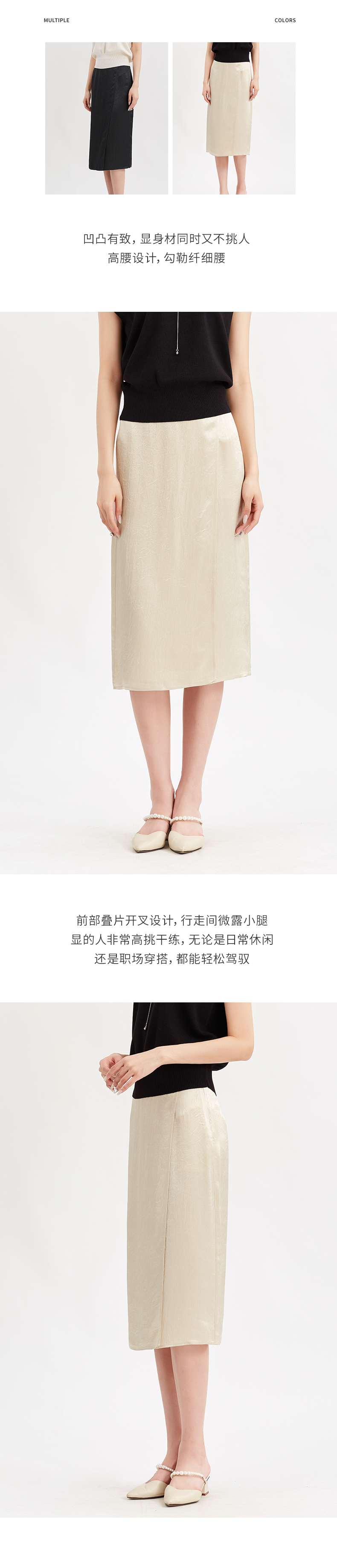 【积分兑换】阿菁娜醋酸气质高腰缎面浮雕直筒裙F29X213010