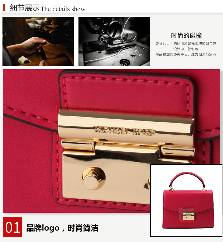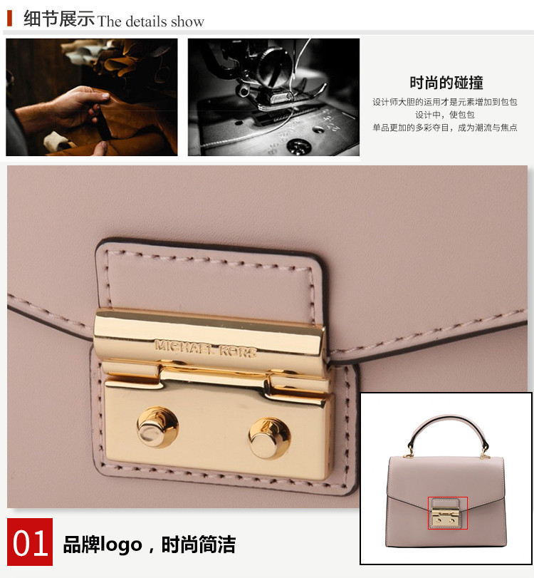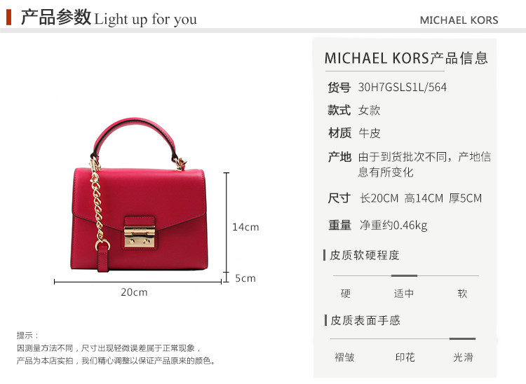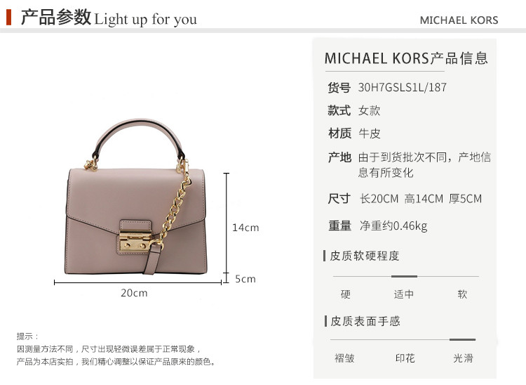 MichaelKors/迈克·科尔斯女士Saffiano皮革单肩斜挎手提包30H7GSLS1L(浅粉色底钉金属磨损瑕疵)
