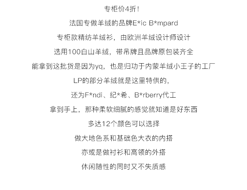 ¥600·专柜2折·法国奢牌EB精纺羊绒·女士V瓴套衫gys 私席经典衣橱·新年精纺羊绒特卖·成本价回馈𝟝款经典
