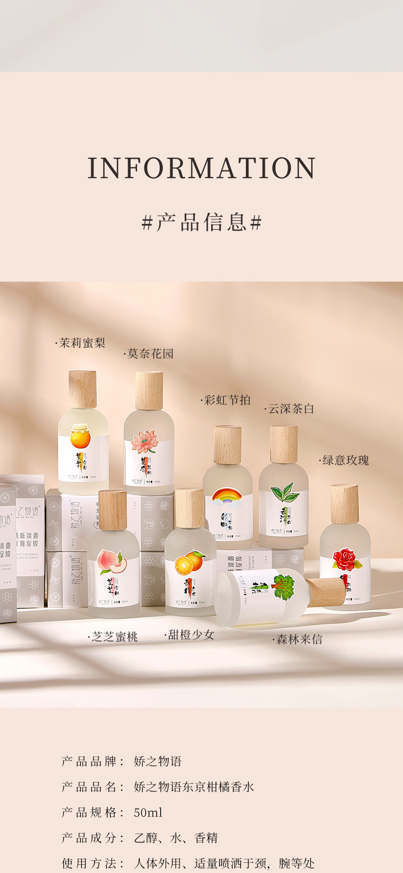 「9.9元包邮!数款香型」娇之物语东京淡香柑橘香水清新女士香水茉莉玫瑰香水香氛精油