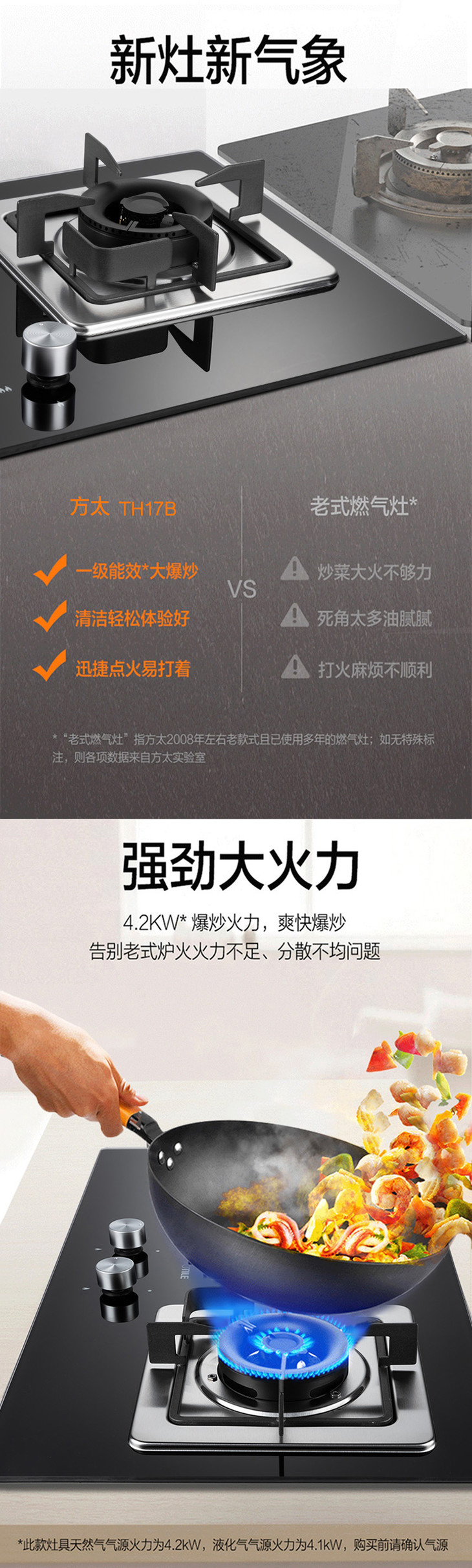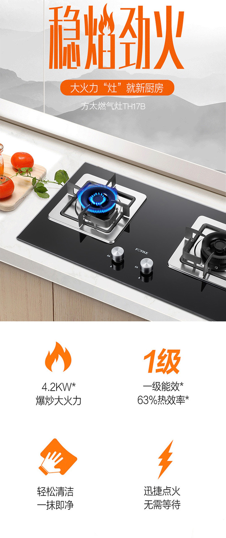 方太(13947)(FOTILE)JZT-TH17B 4.2KW大火力,一级能效 63%热效率燃气灶