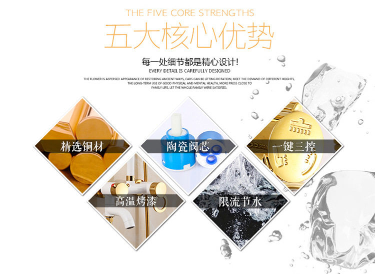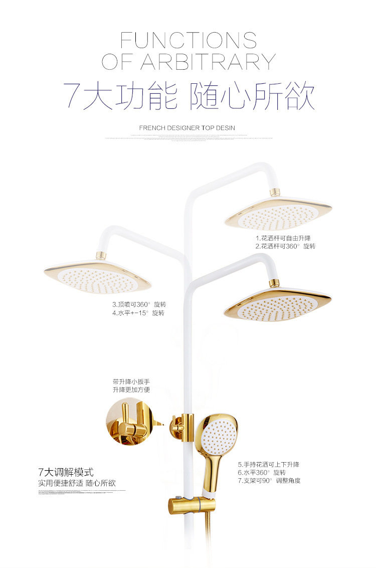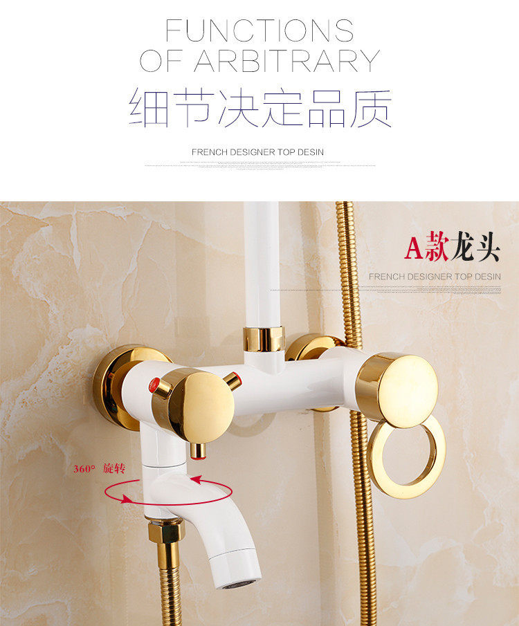 喷头欧式浴室卫生间家用淋浴器全铜体洗澡花洒色套装淋浴白金沐浴