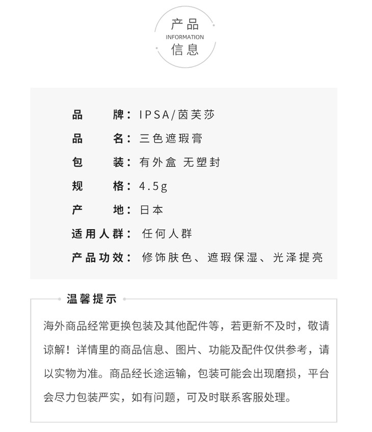 IPSA/茵芙莎三色遮瑕膏/创意遮瑕膏4.5g 遮盖雀斑痘印【CDF】