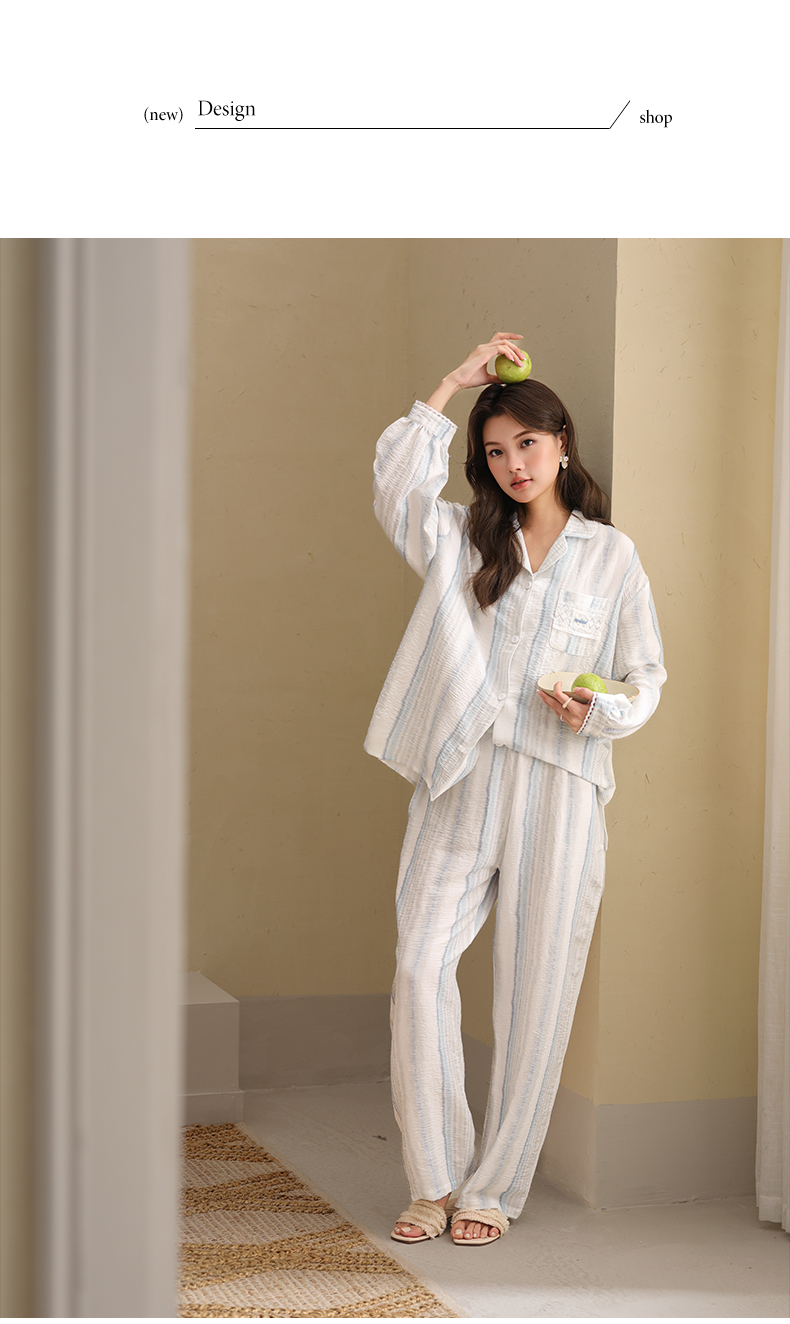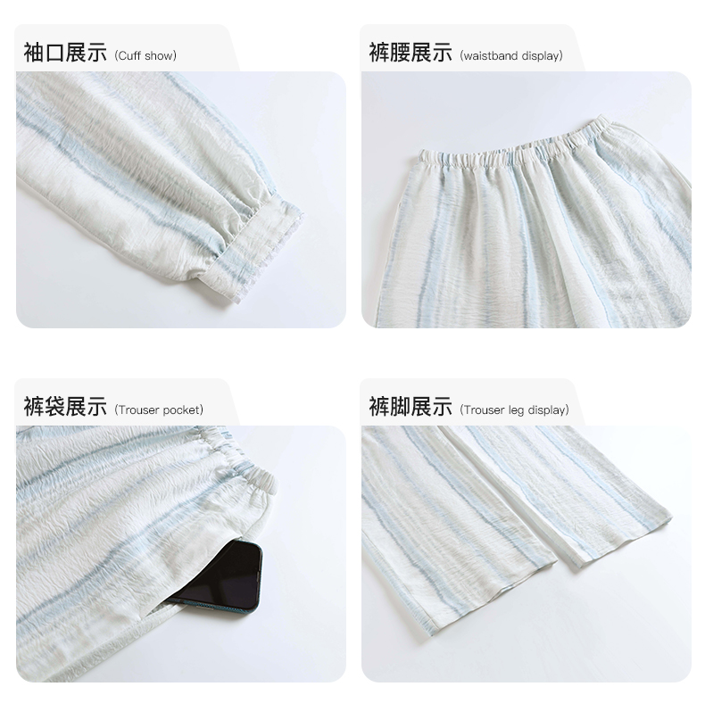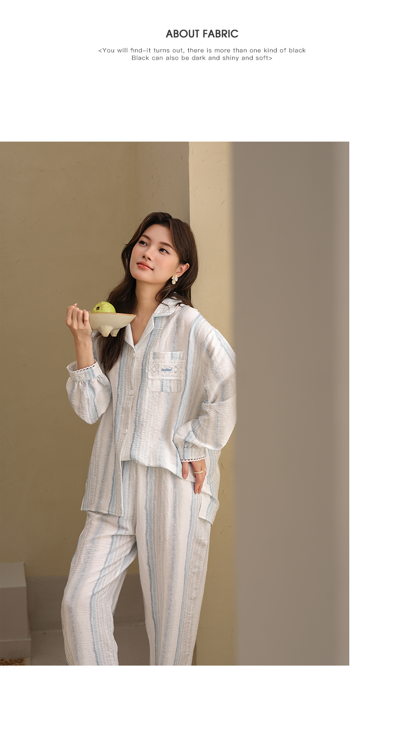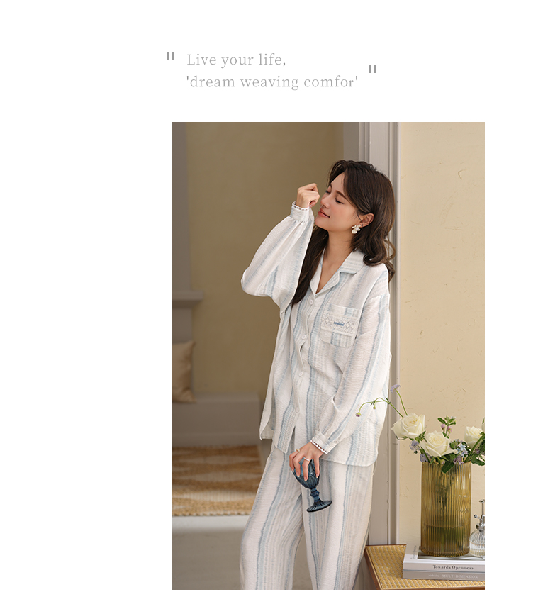可人儿春秋季带胸垫泡泡绵女士长袖长裤睡衣可外出小众家居服套装