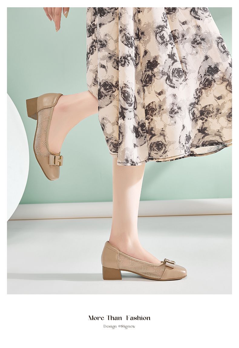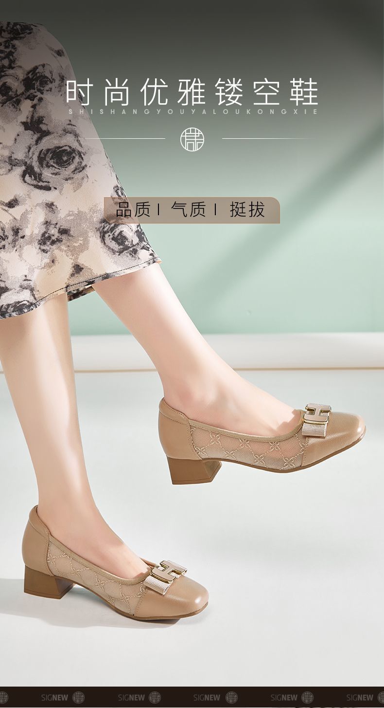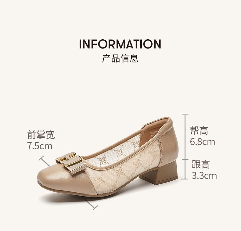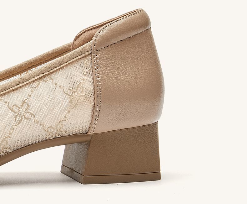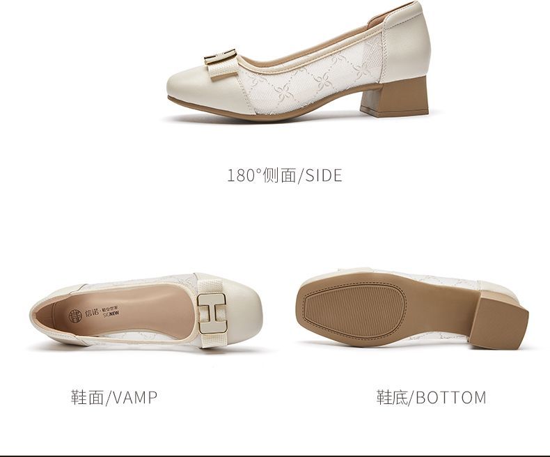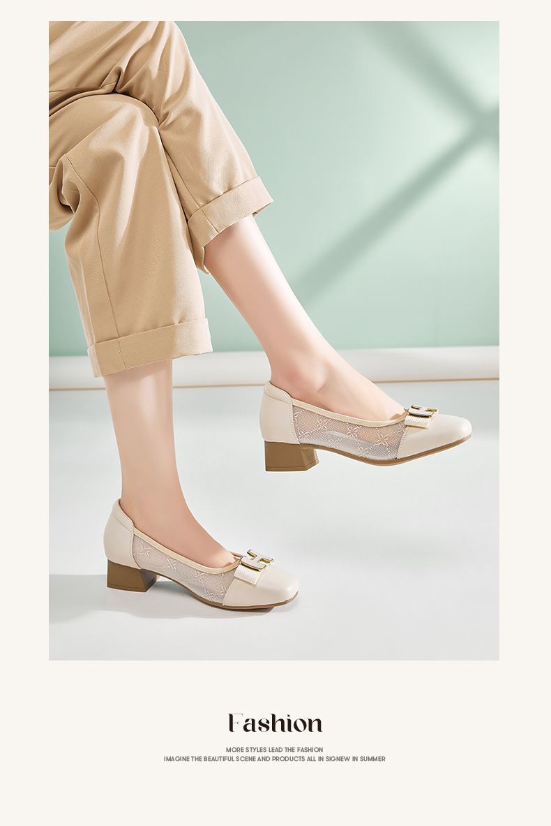 信诺网纱妈妈鞋2025新款夏季粗跟软底单鞋中老年透气休闲凉鞋女款5C1935-11
