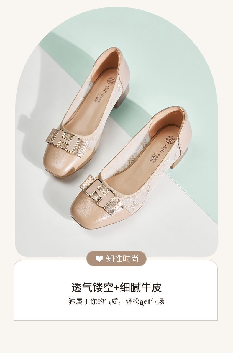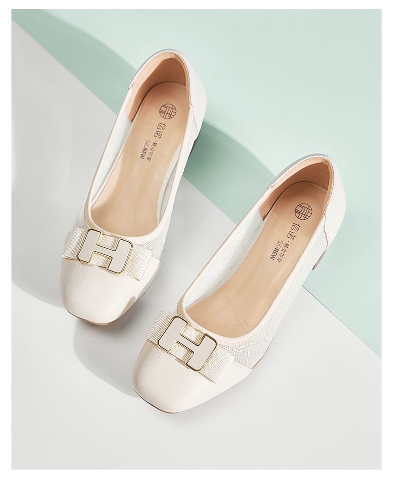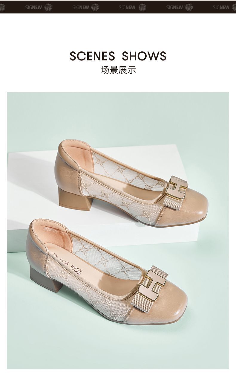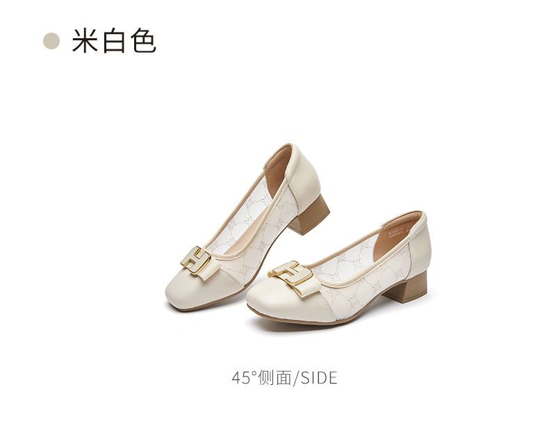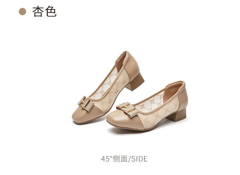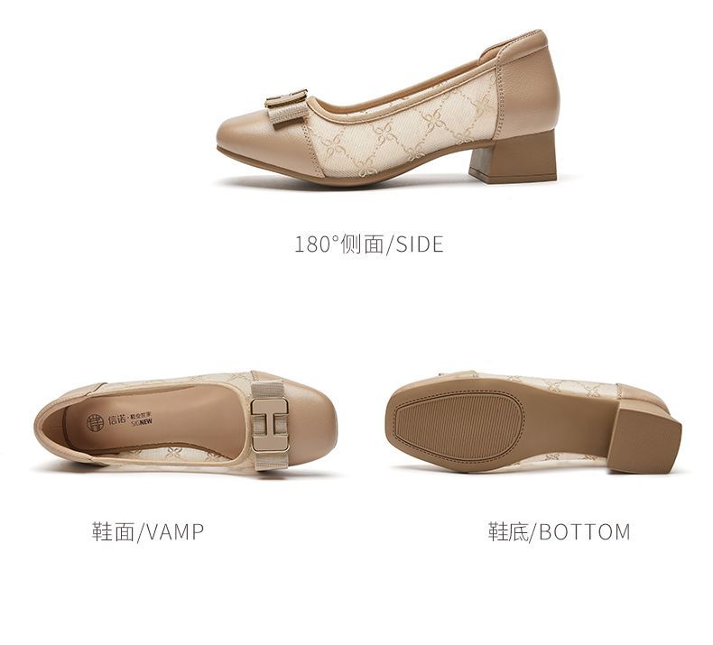 信诺网纱妈妈鞋2025新款夏季粗跟软底单鞋中老年透气休闲凉鞋女款5C1935-11