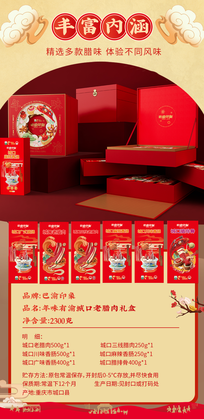 【城口老腊肉】巴渝印象年味有渝礼盒 2.3kg 地标产品 非遗工艺 农家土猪