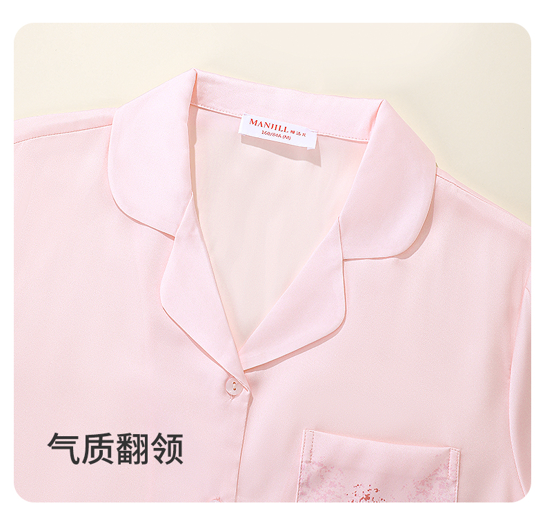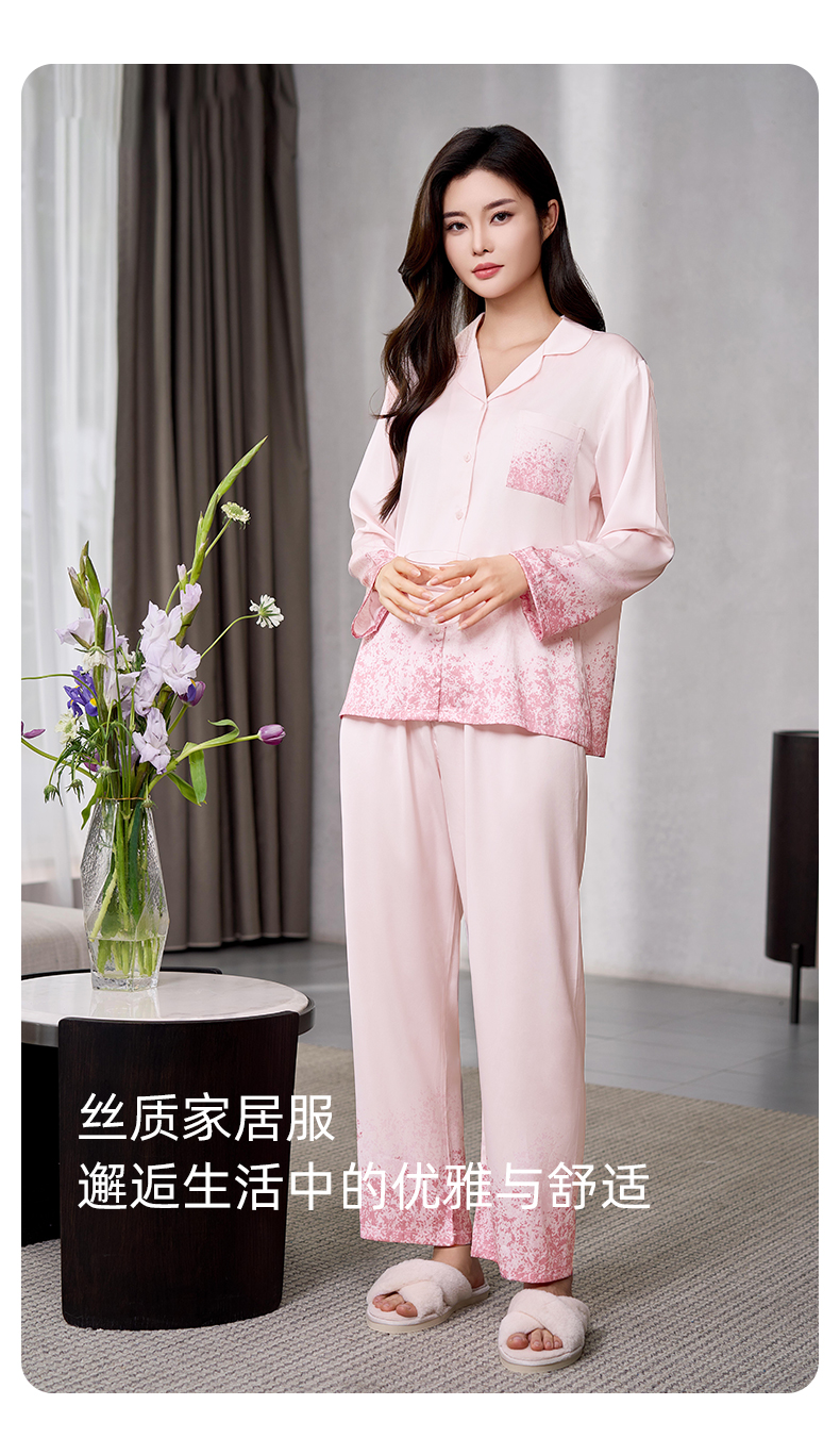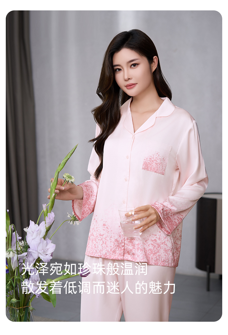 【商场同款】熳洁儿 家居服开衫长袖长裤套装丝滑缎面绸24703101