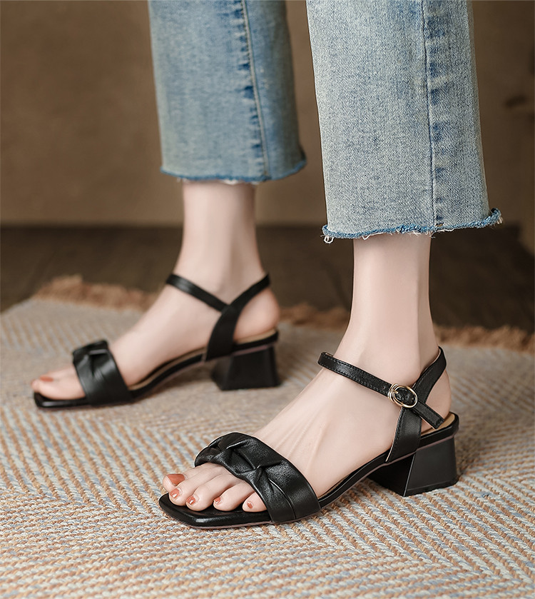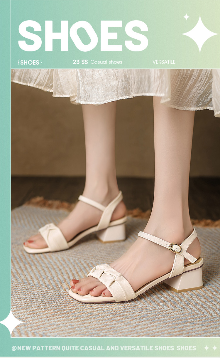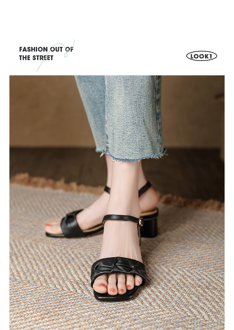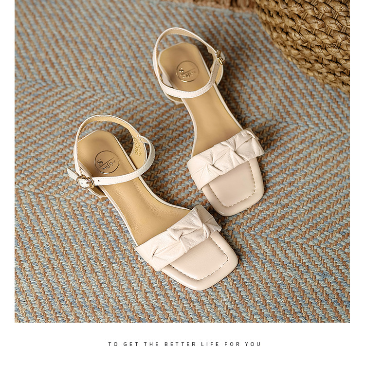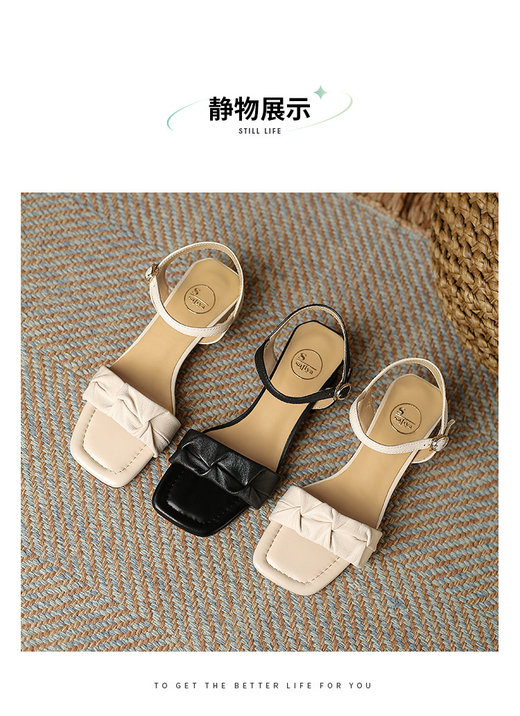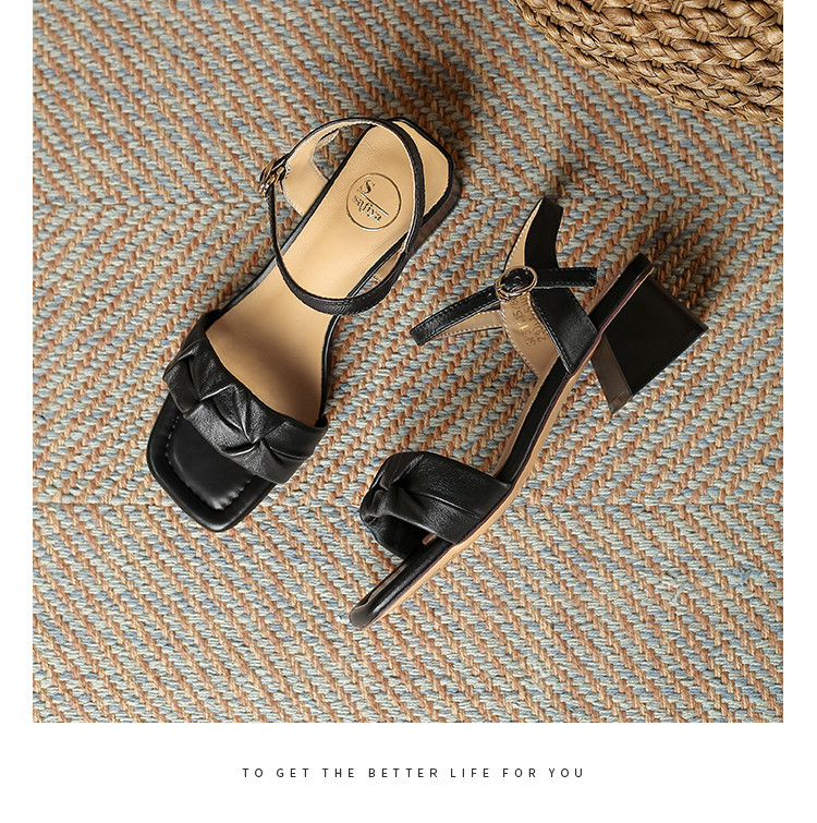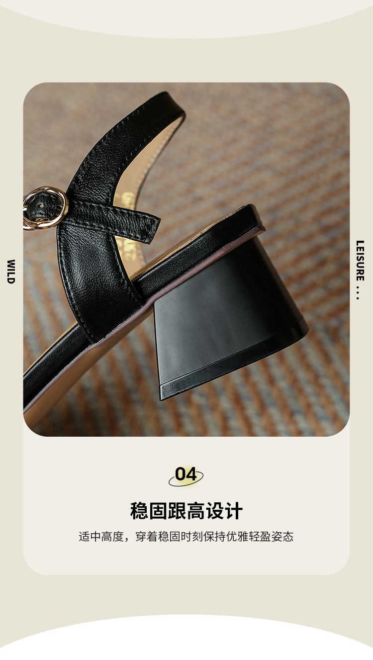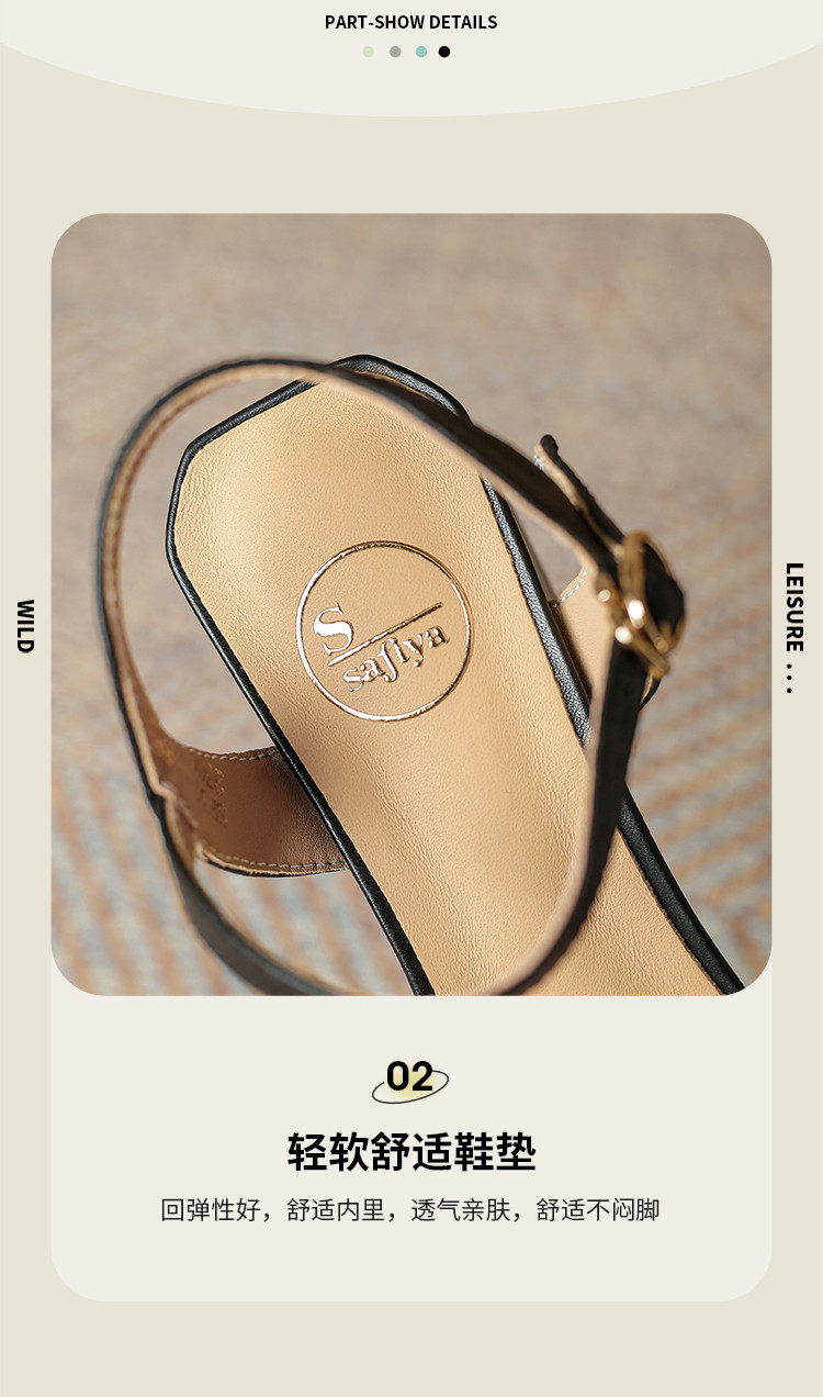 品质好货| Safiya索菲娅2023夏季新品舒适羊皮气质粗跟一字带凉鞋SF31115788