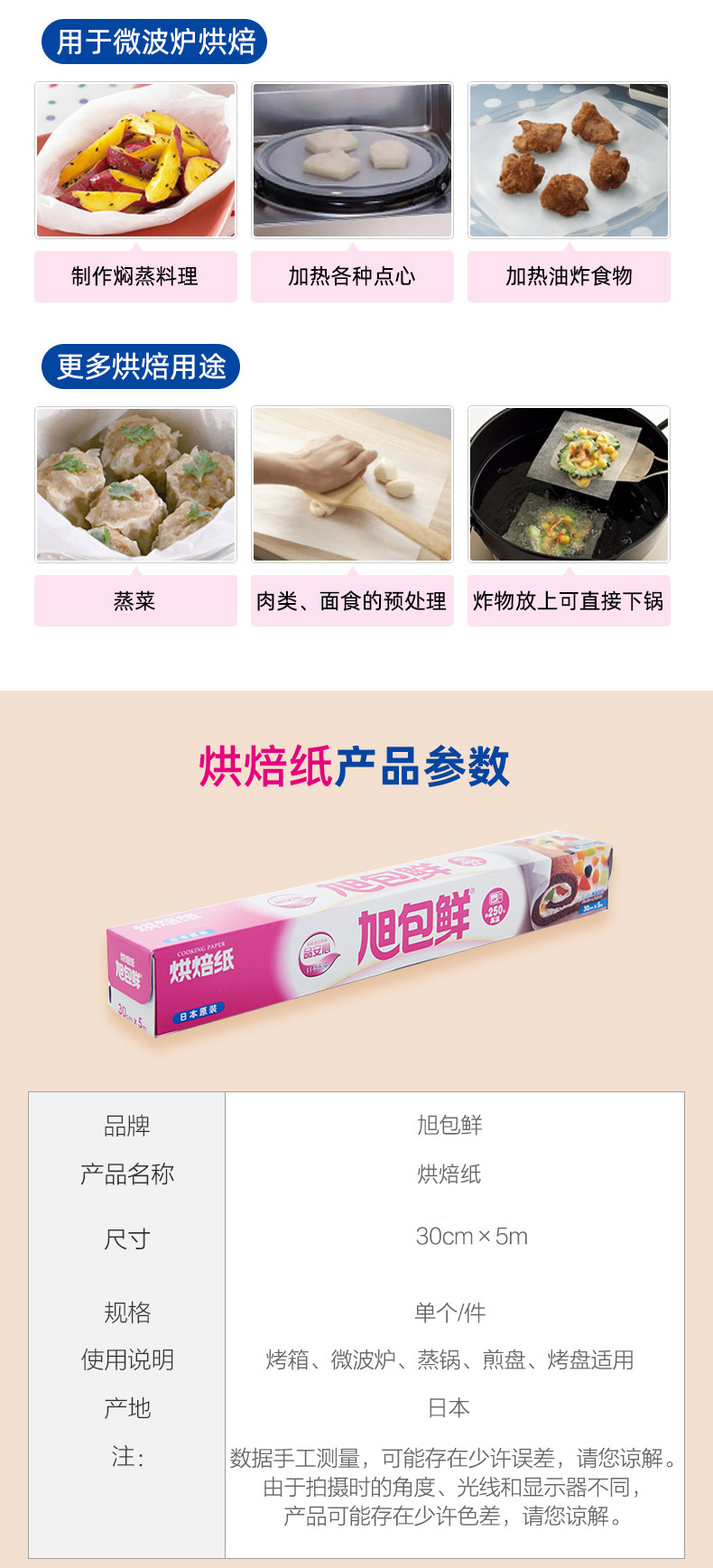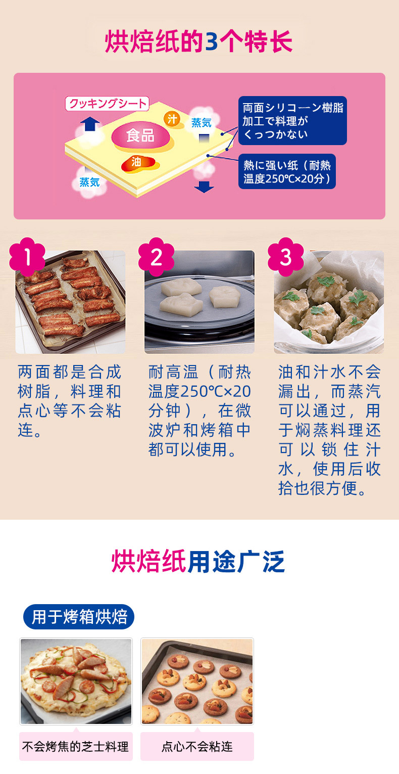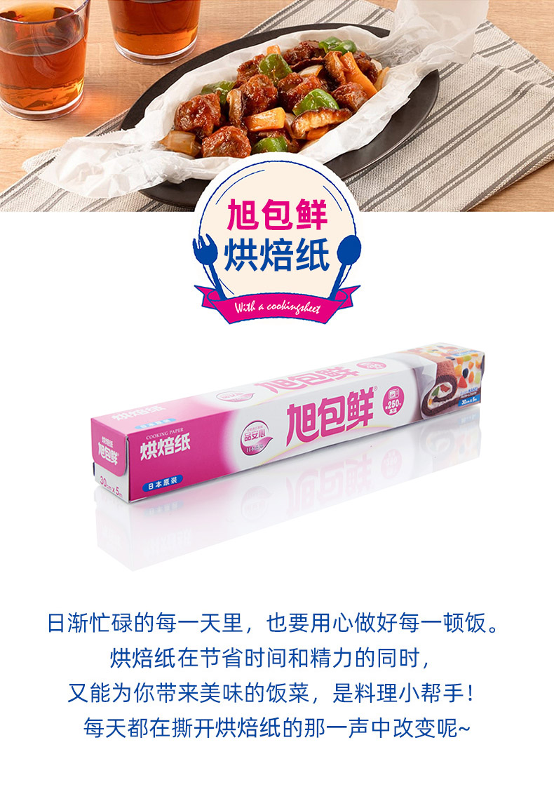 旭包鲜 日本进口一次性烹调纸烘培纸30cm*5m 蛋糕油纸可代替蒸笼布硅油纸垫盘纸 锡纸 烹调纸