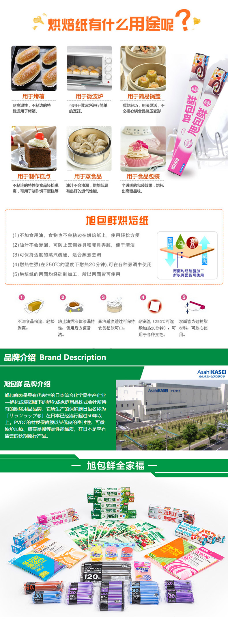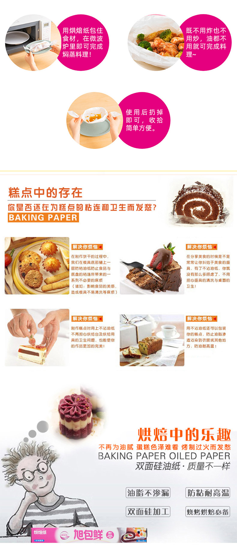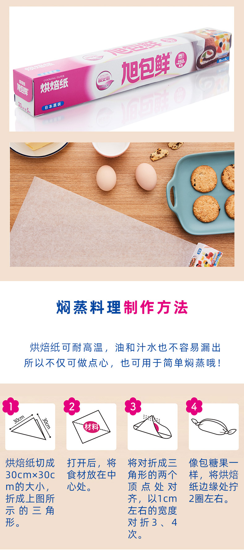 旭包鲜 日本进口一次性烹调纸烘培纸30cm*5m 蛋糕油纸可代替蒸笼布硅油纸垫盘纸 锡纸 烹调纸