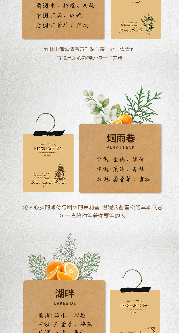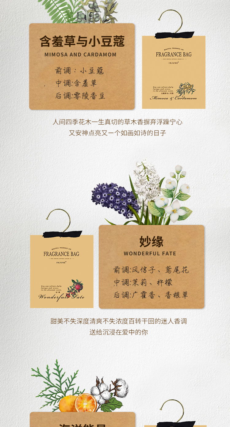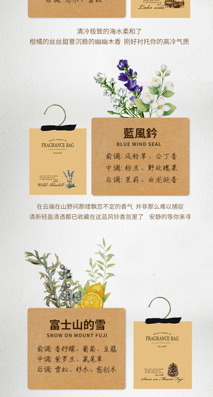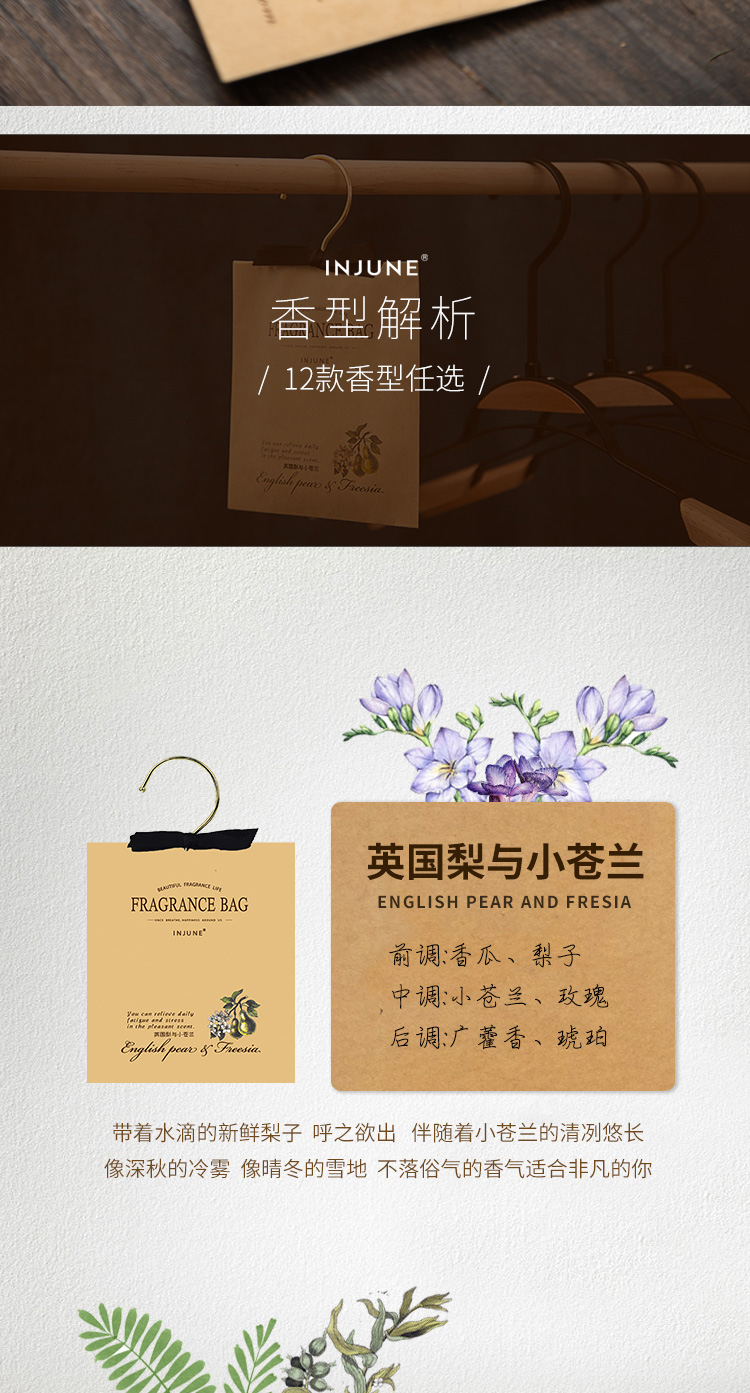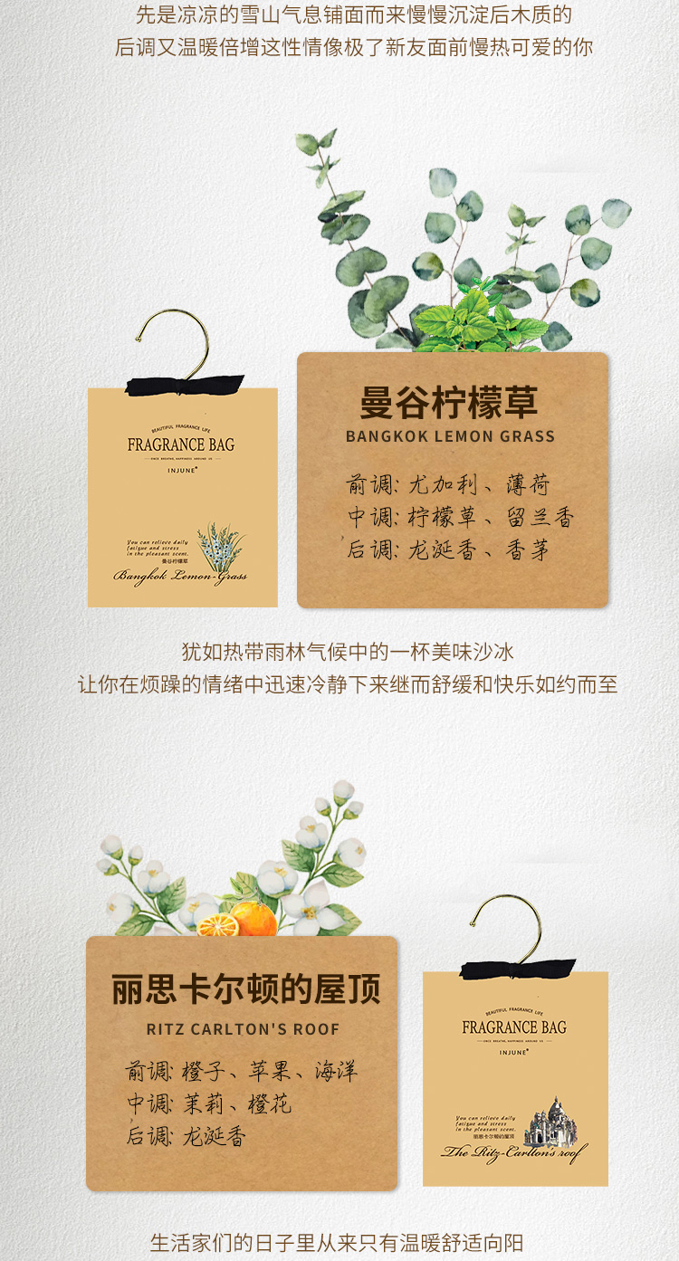INJUNE香包衣柜挂钩香囊女生寝室衣橱衣帽间持久淡香衣物留香除湿