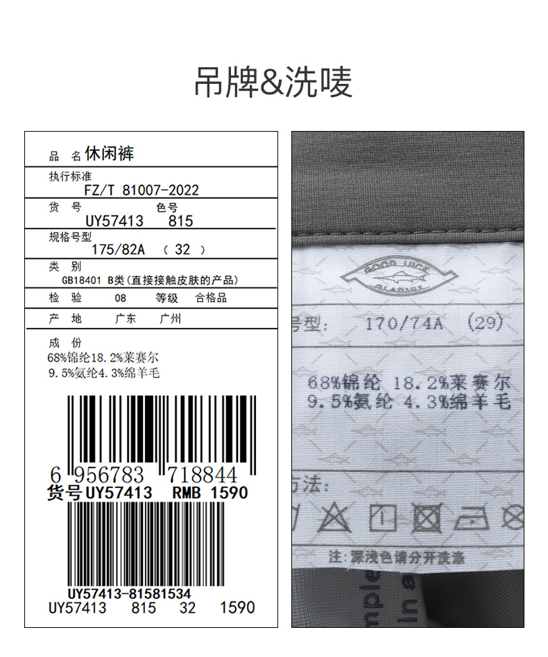 【莱赛尔】德鲨鲨鱼男装灰色休闲裤子2026春夏新品直筒弹力长裤男