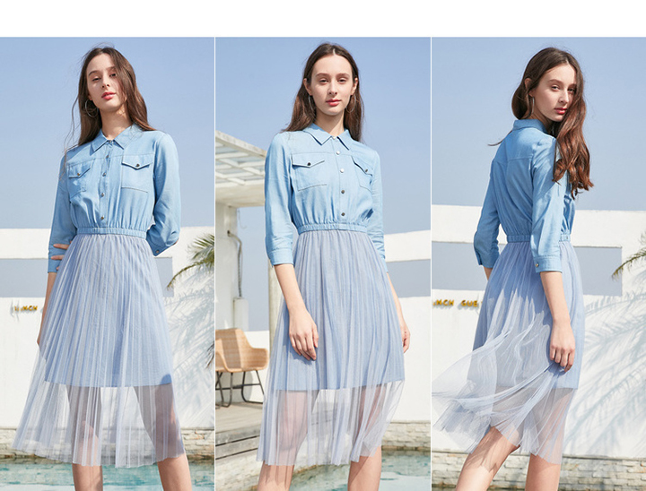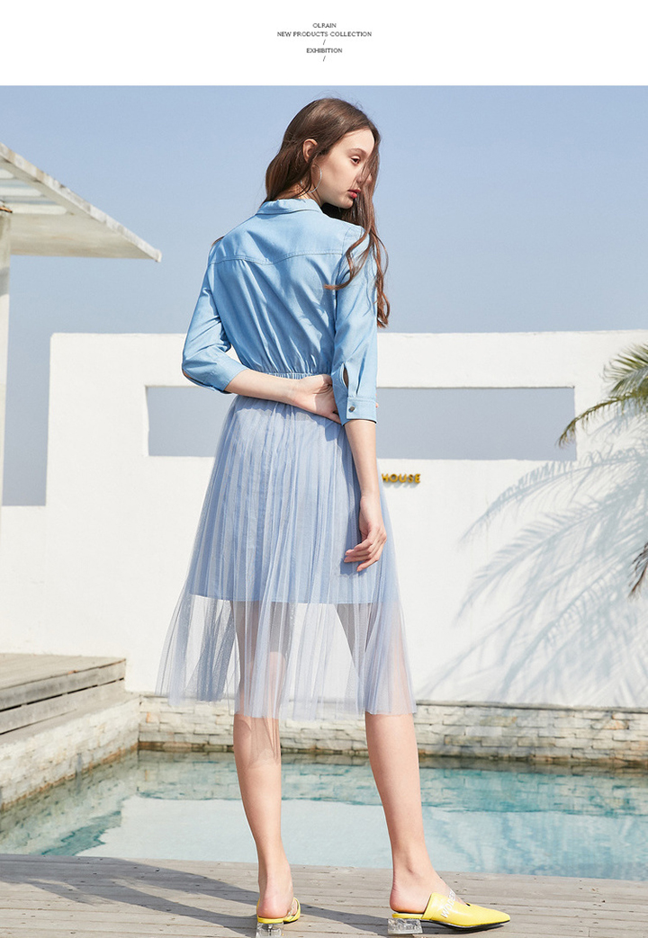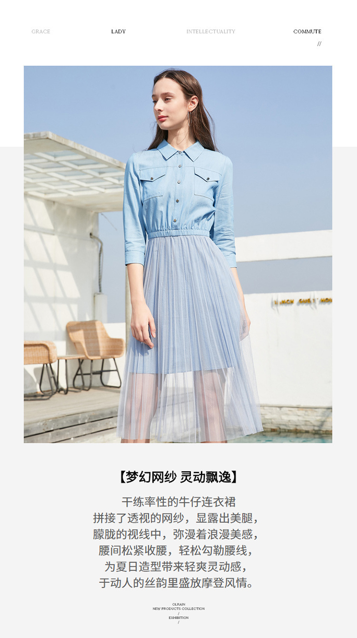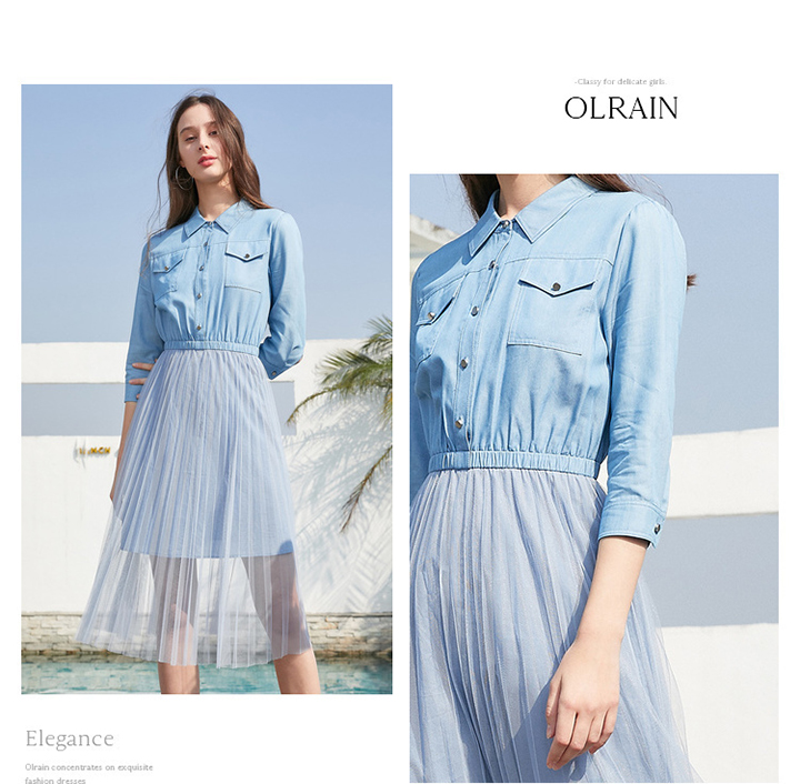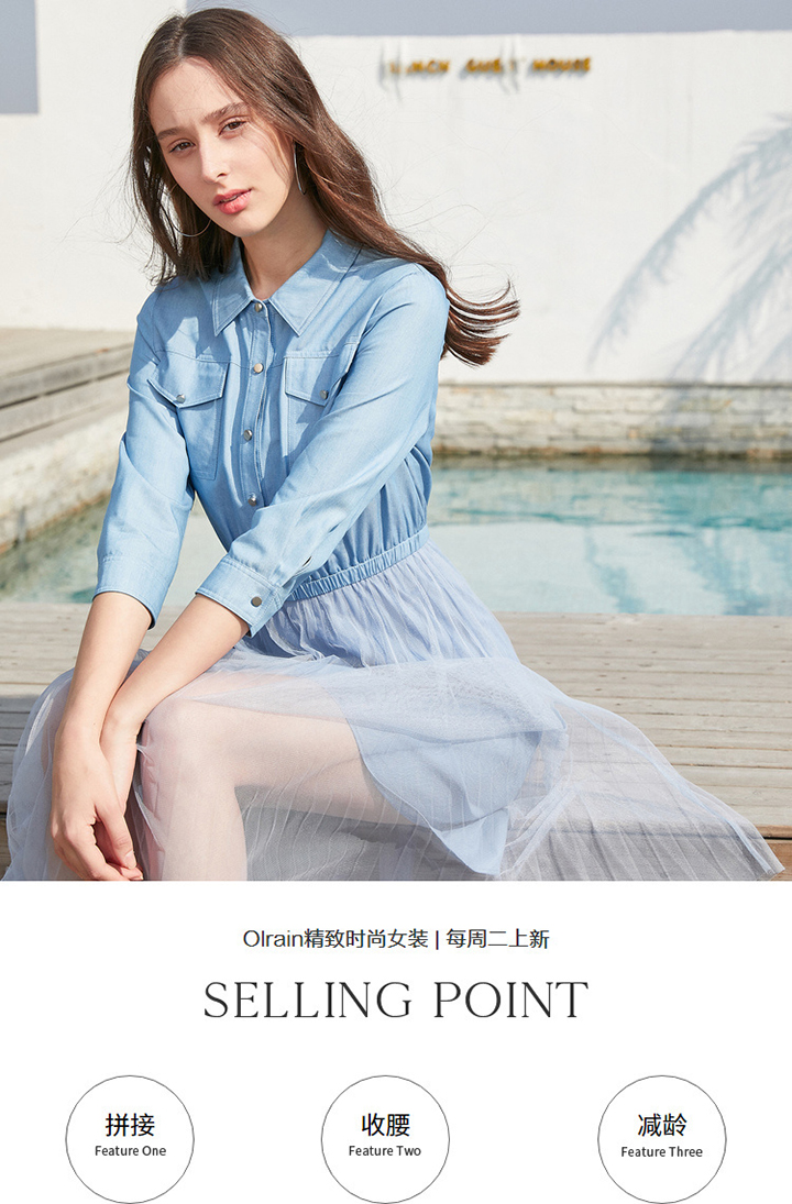 OLrain法式高级穿搭衬衫连衣裙女夏季2022年收腰气质假两件裙