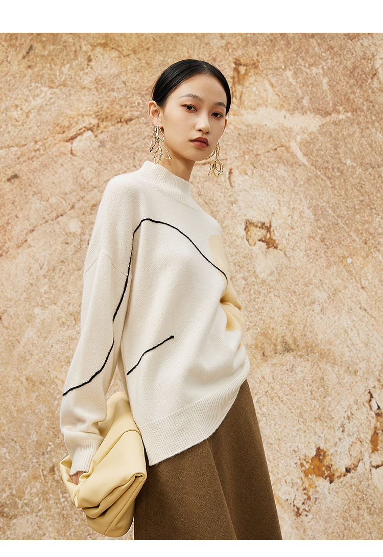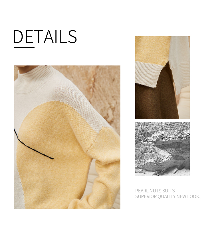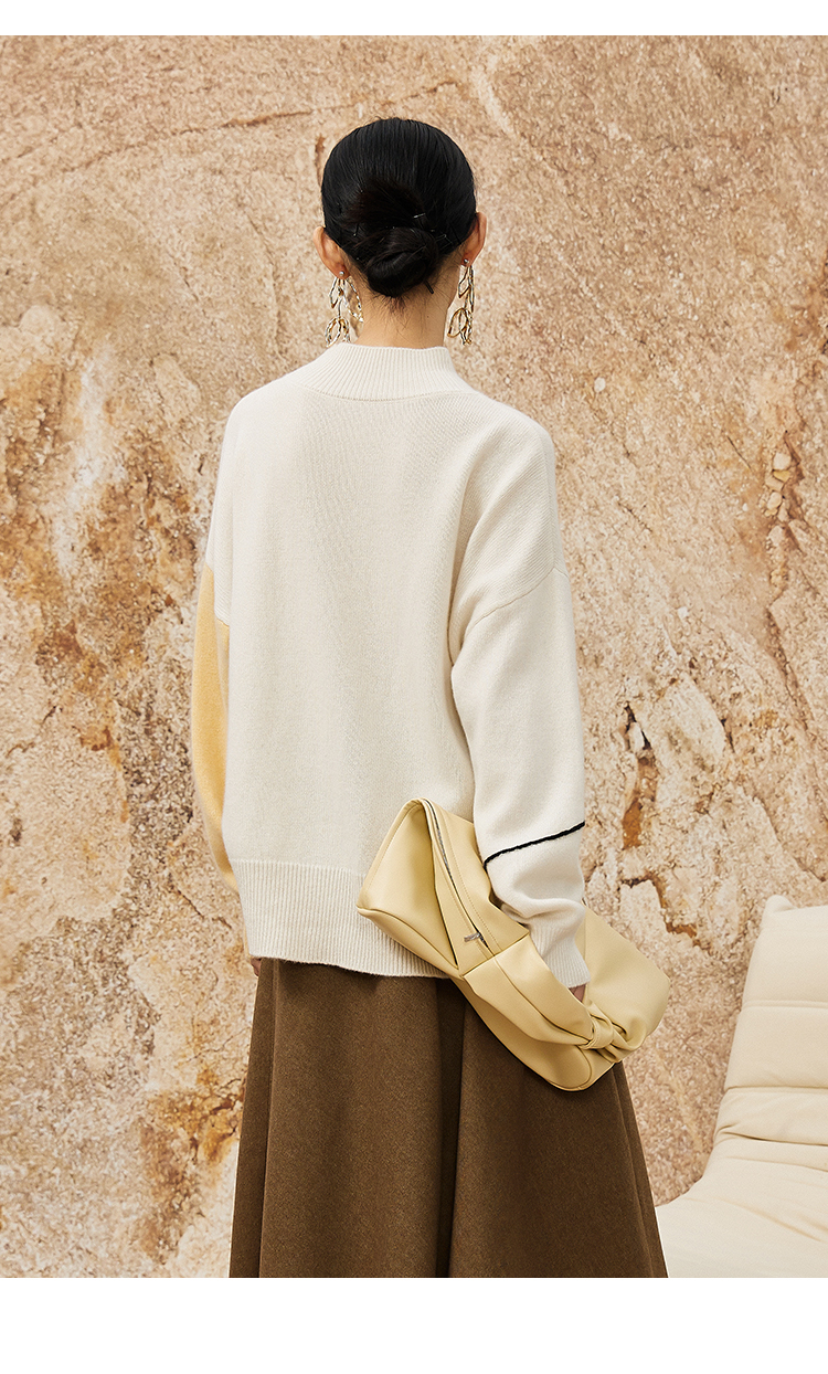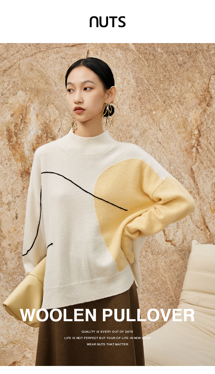NUTS春季新款时尚气质百搭宽松半高领撞色针织套头衫女342052283