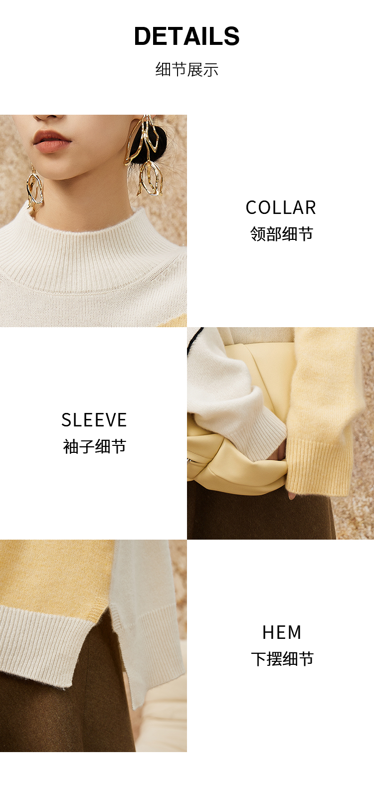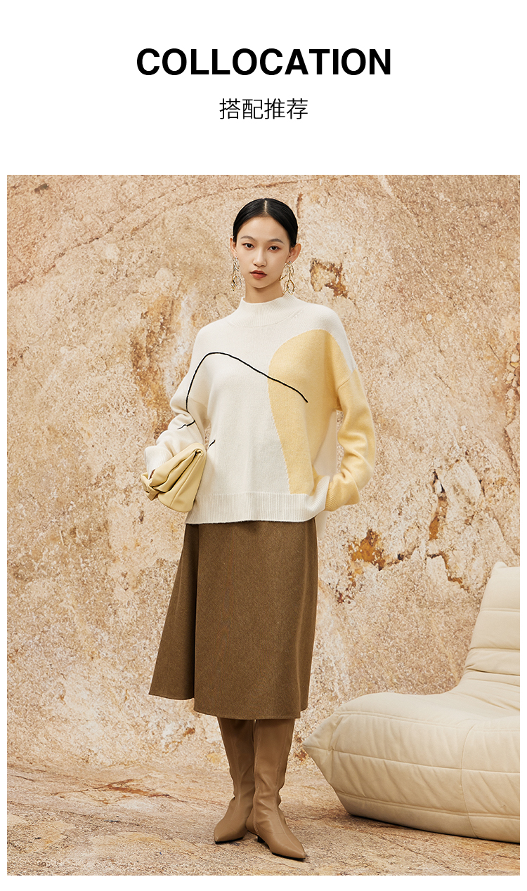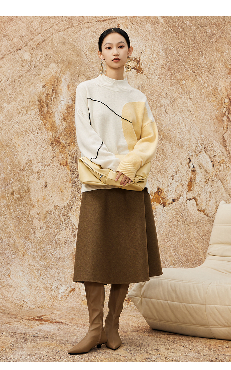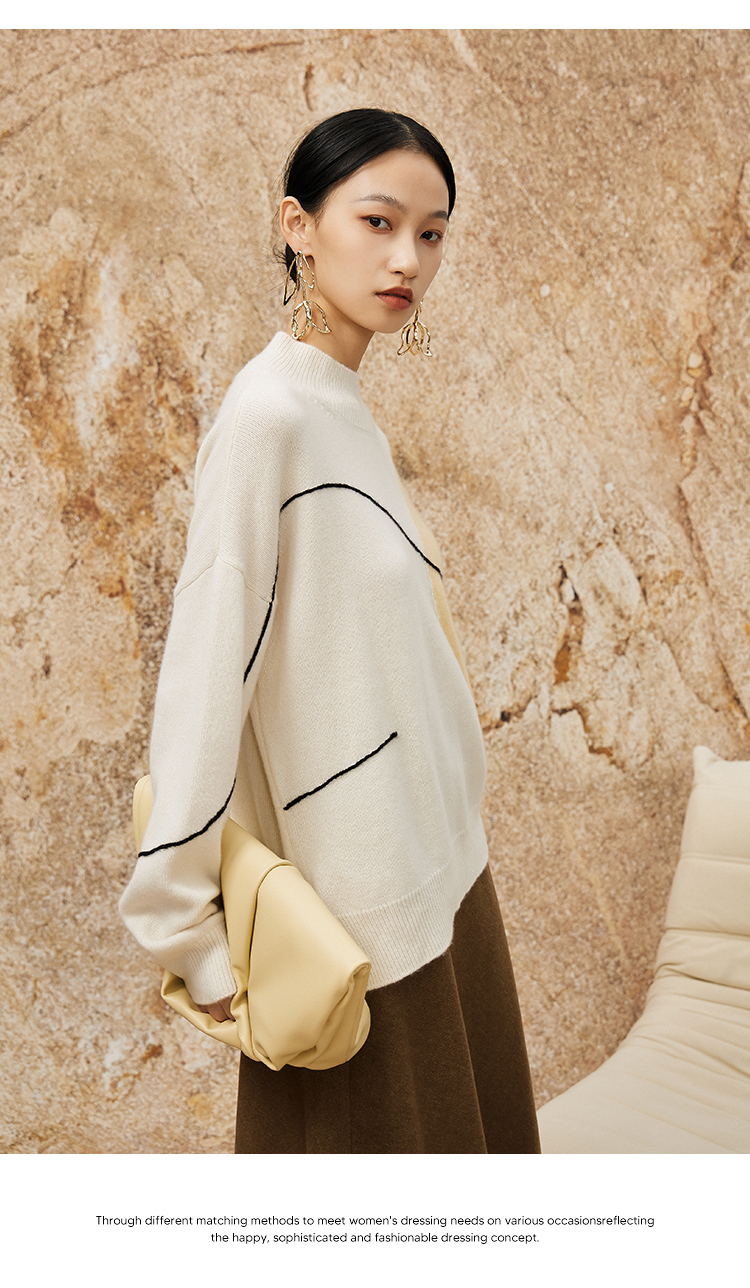NUTS春季新款时尚气质百搭宽松半高领撞色针织套头衫女342052283