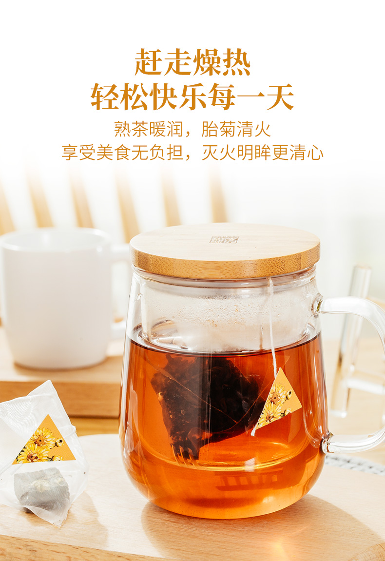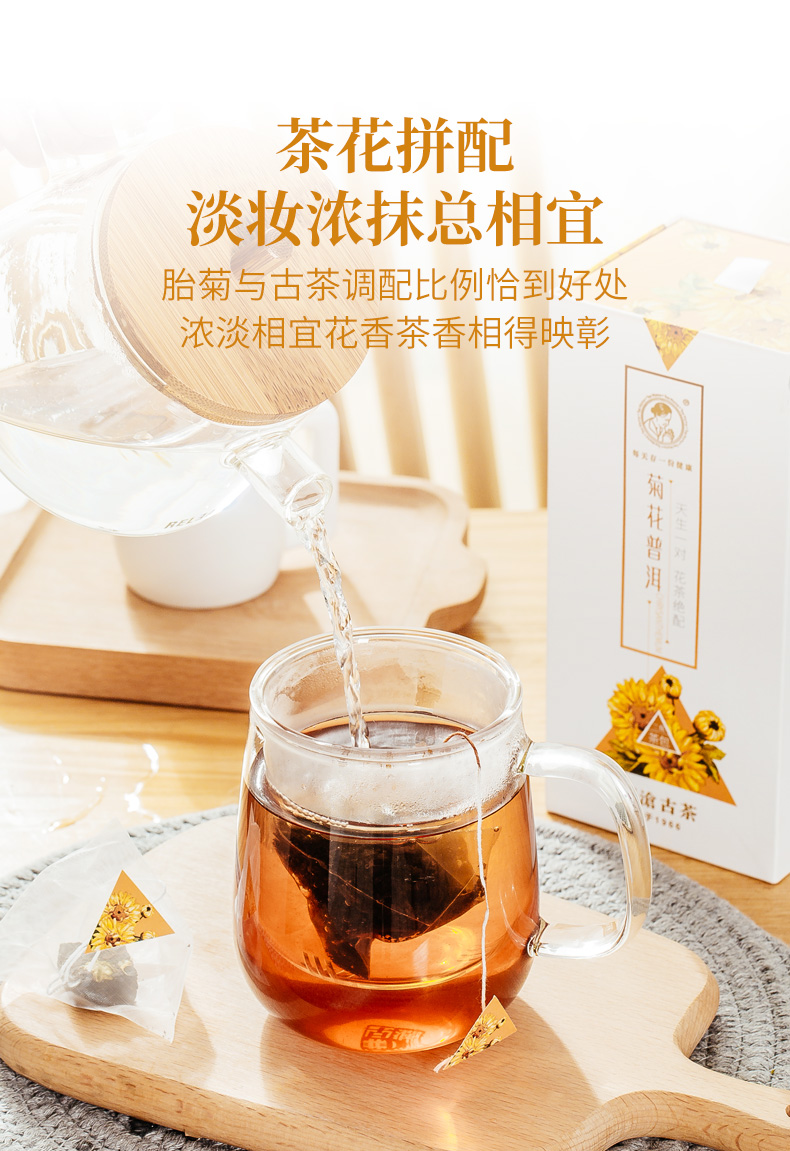 澜沧古茶茶妈妈2020年菊花普洱茶熟茶叶三角茶包花茶组合袋泡茶80g/盒