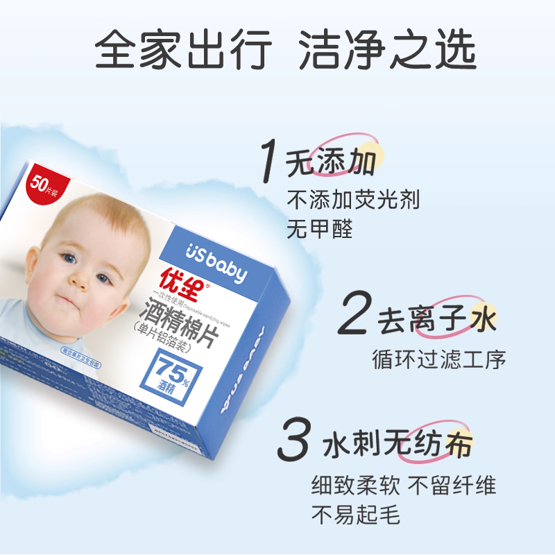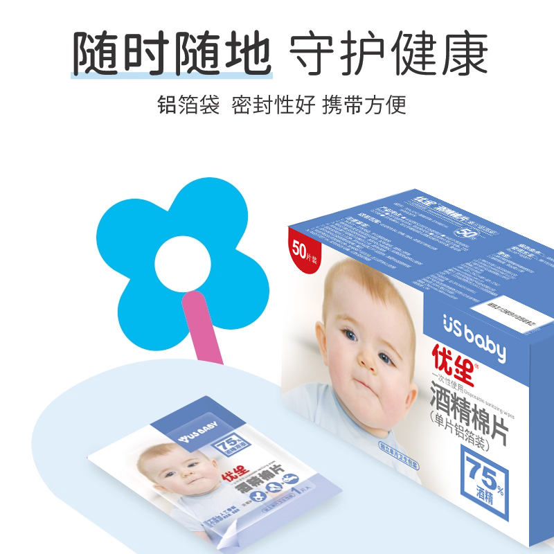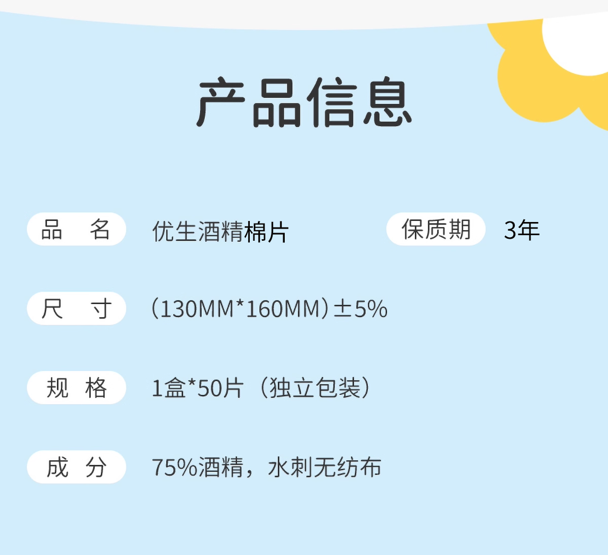 【优生】酒精棉片(单片铝箔装)-50片-2盒