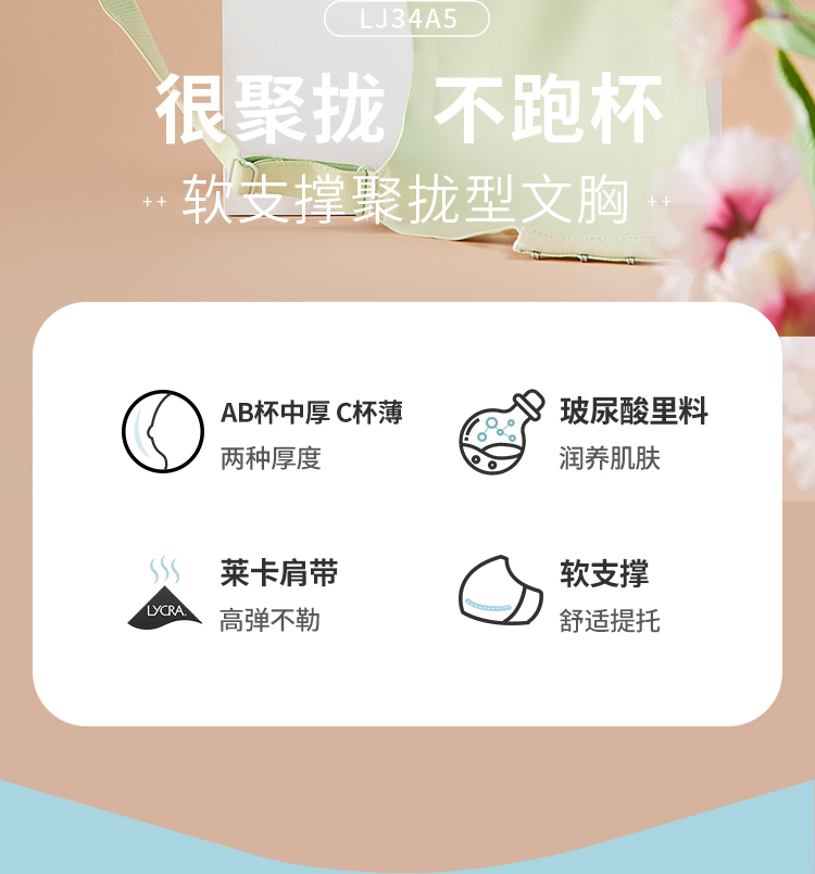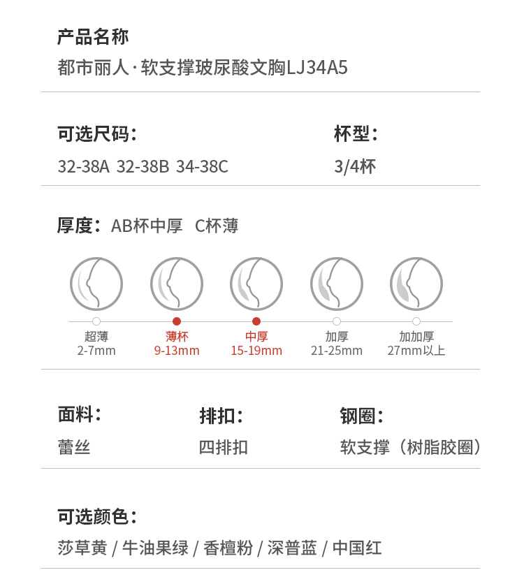 都市丽人舒软挺塑调整型内衣AB:中厚C:薄3/4杯蕾丝塑身文胸四排树脂胶圈LJ34A5