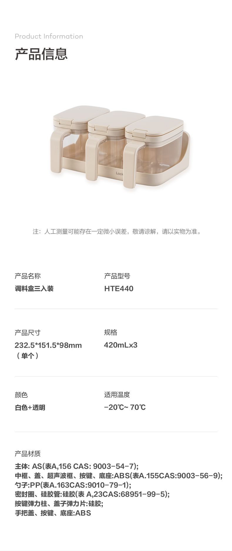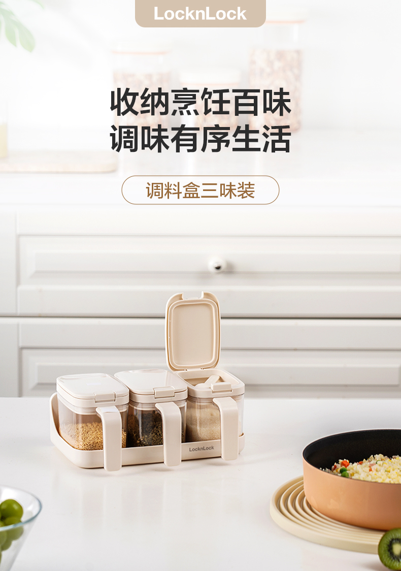 乐扣乐扣 调料盒三味装420ml*3 密封防潮 一键开盖 自带调味勺 48小时发货