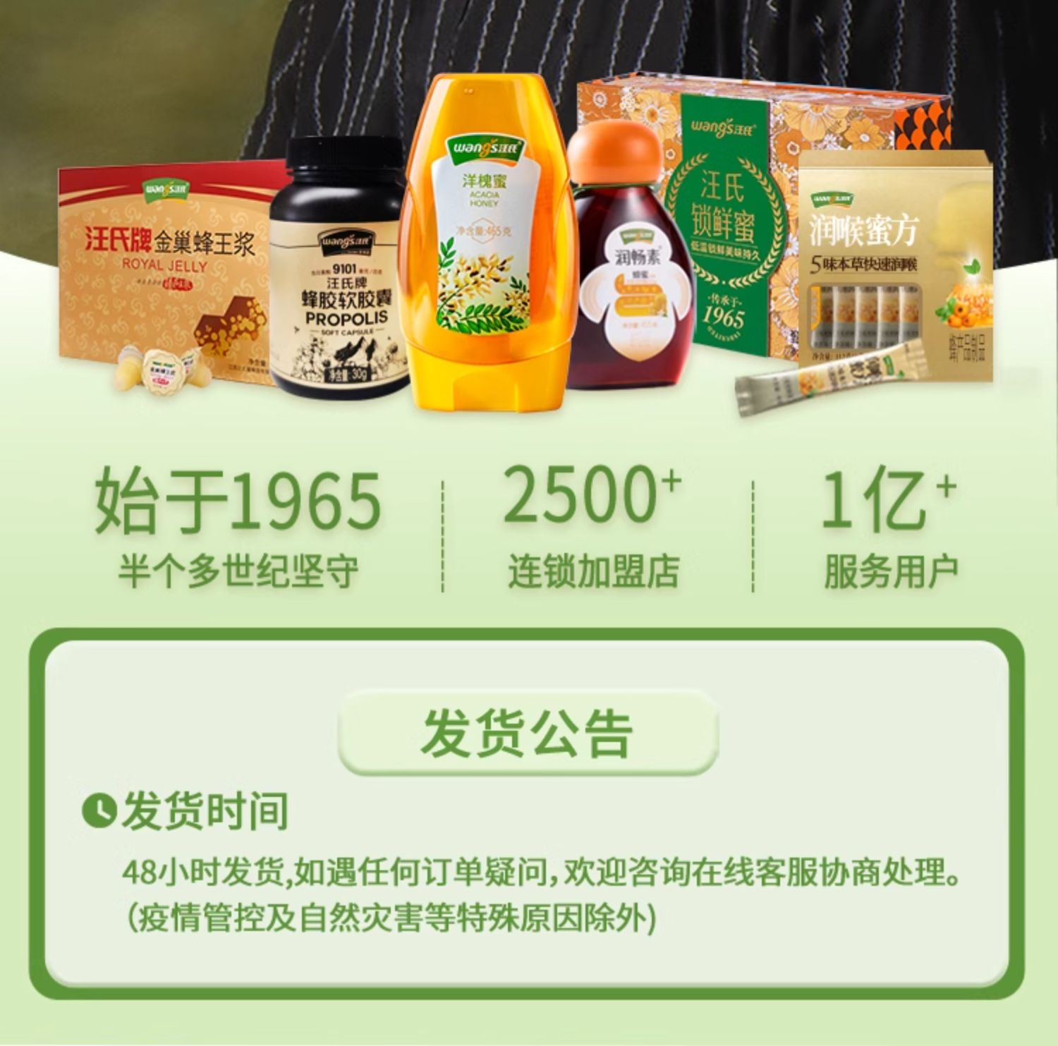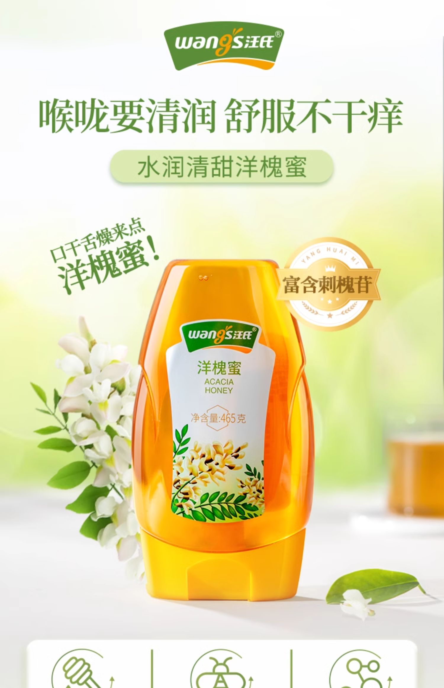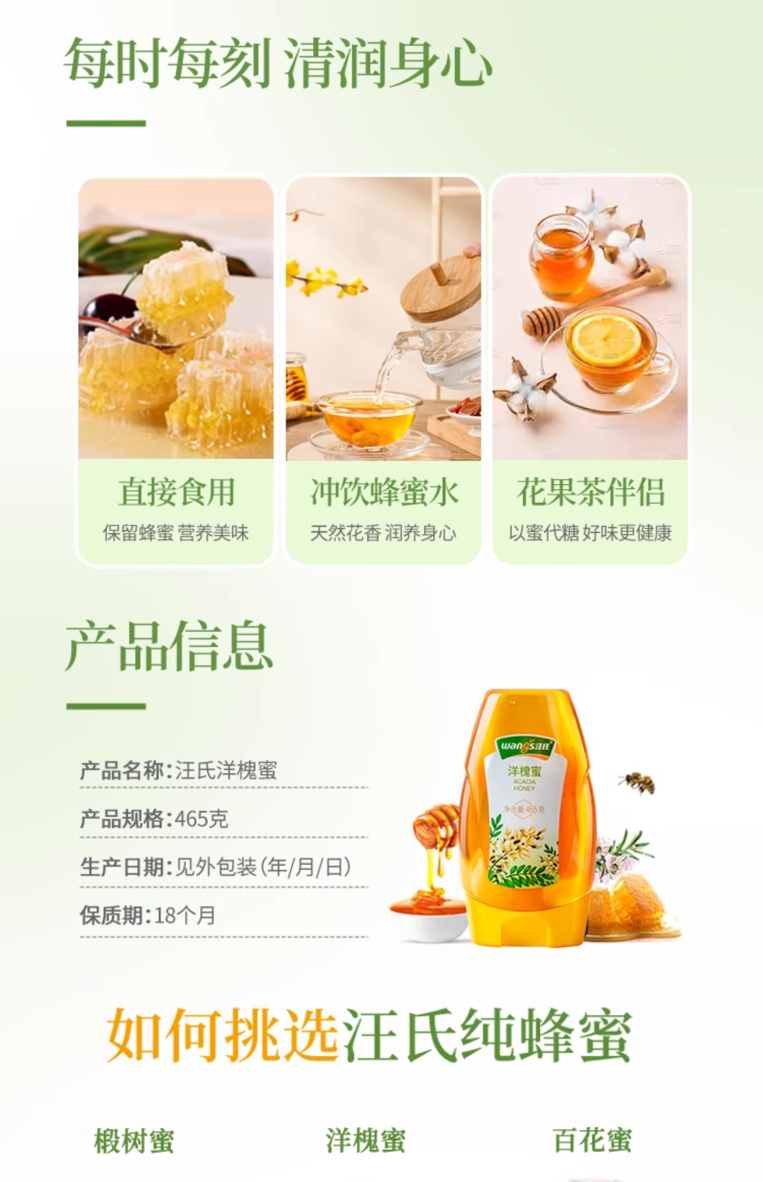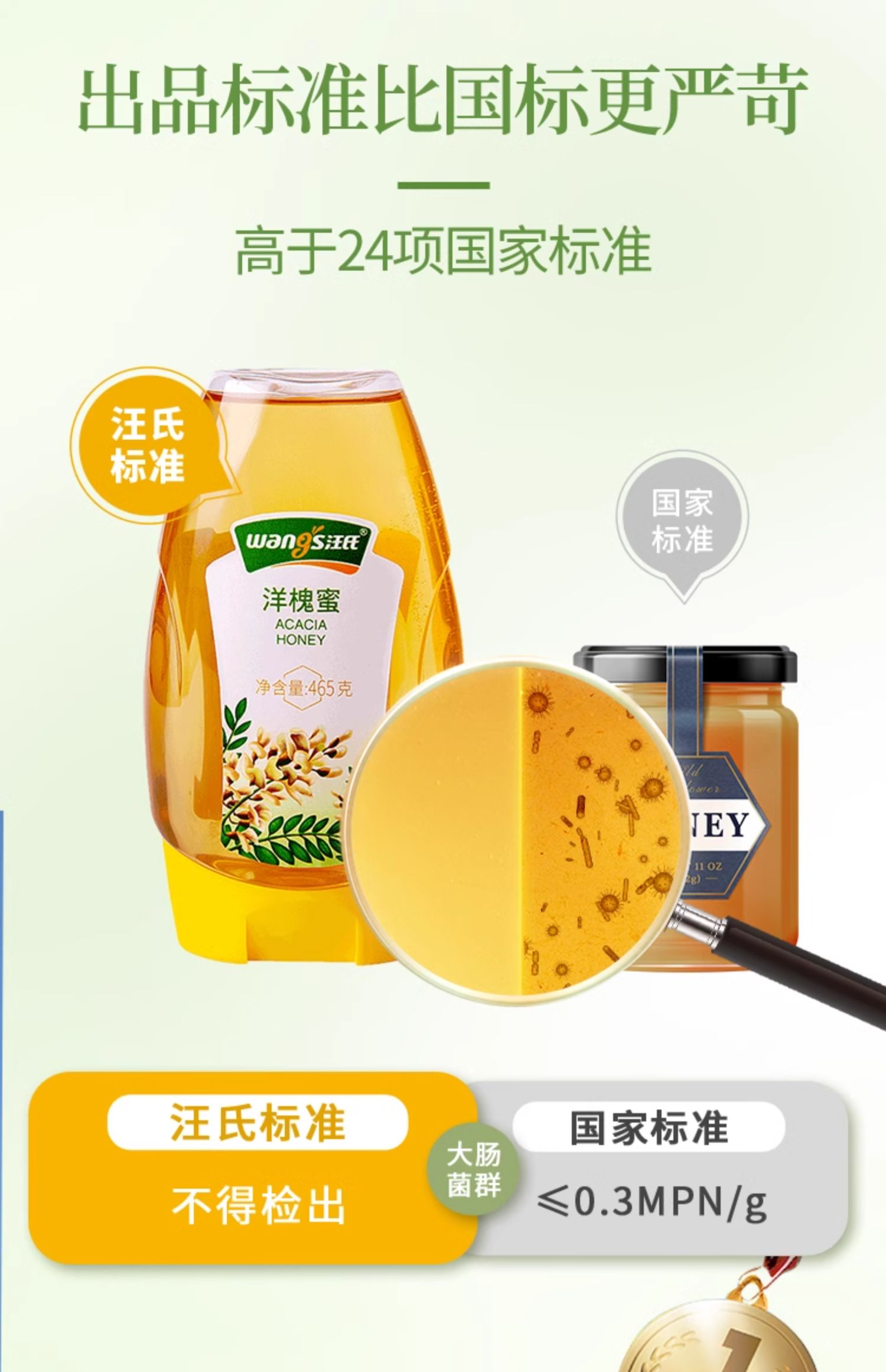 汪氏蜂蜜槐花蜜手工采集品牌健康食用液态秦岭深山大小瓶洋槐蜂蜜