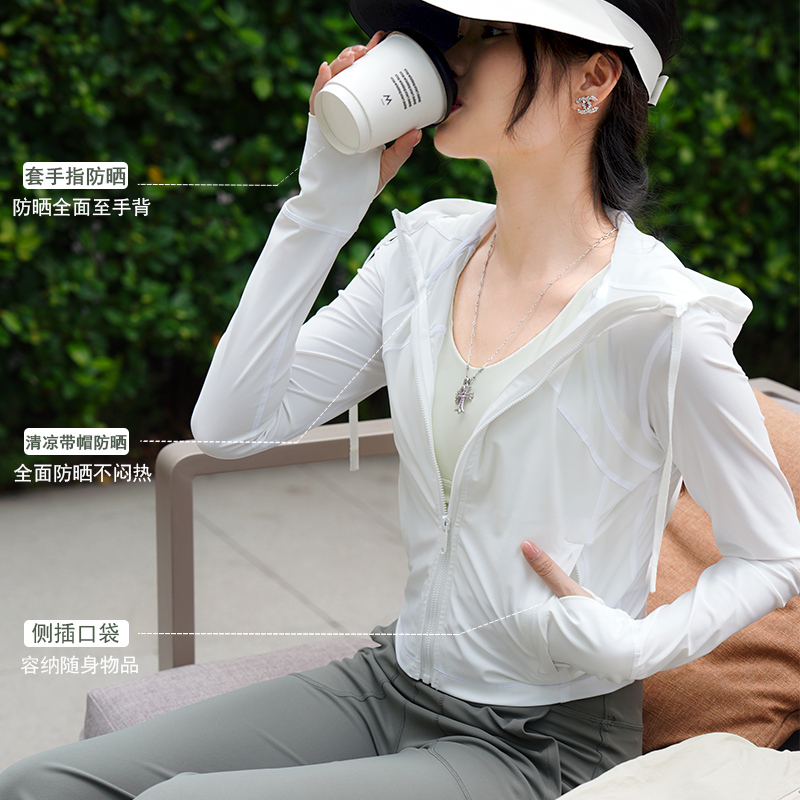 哈瓦塔(短款带帽)凉感抽绳速干防晒衣H350105