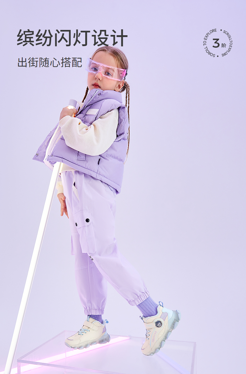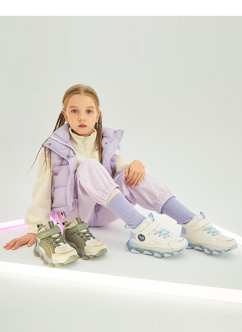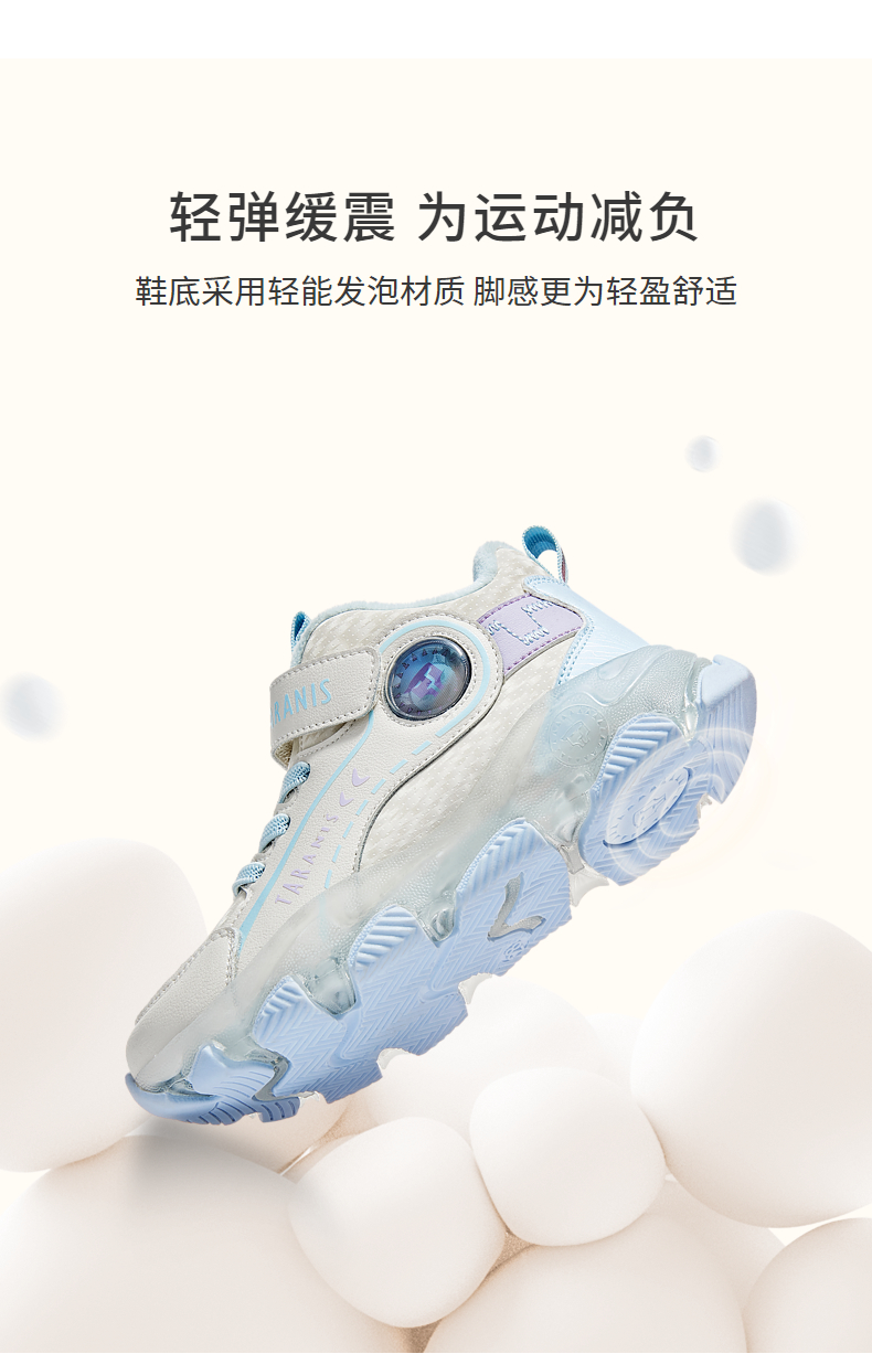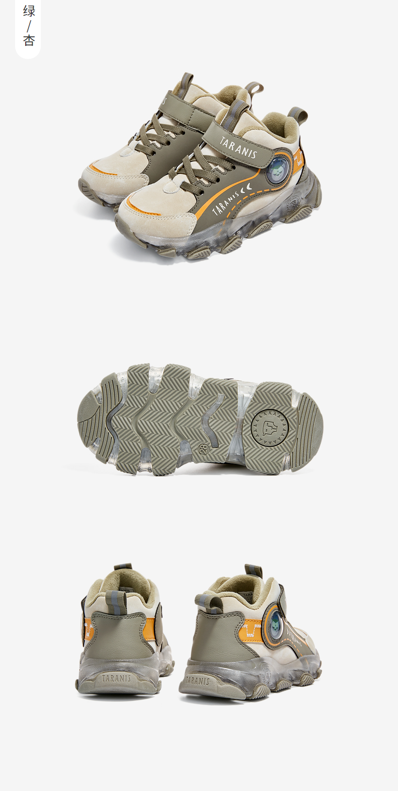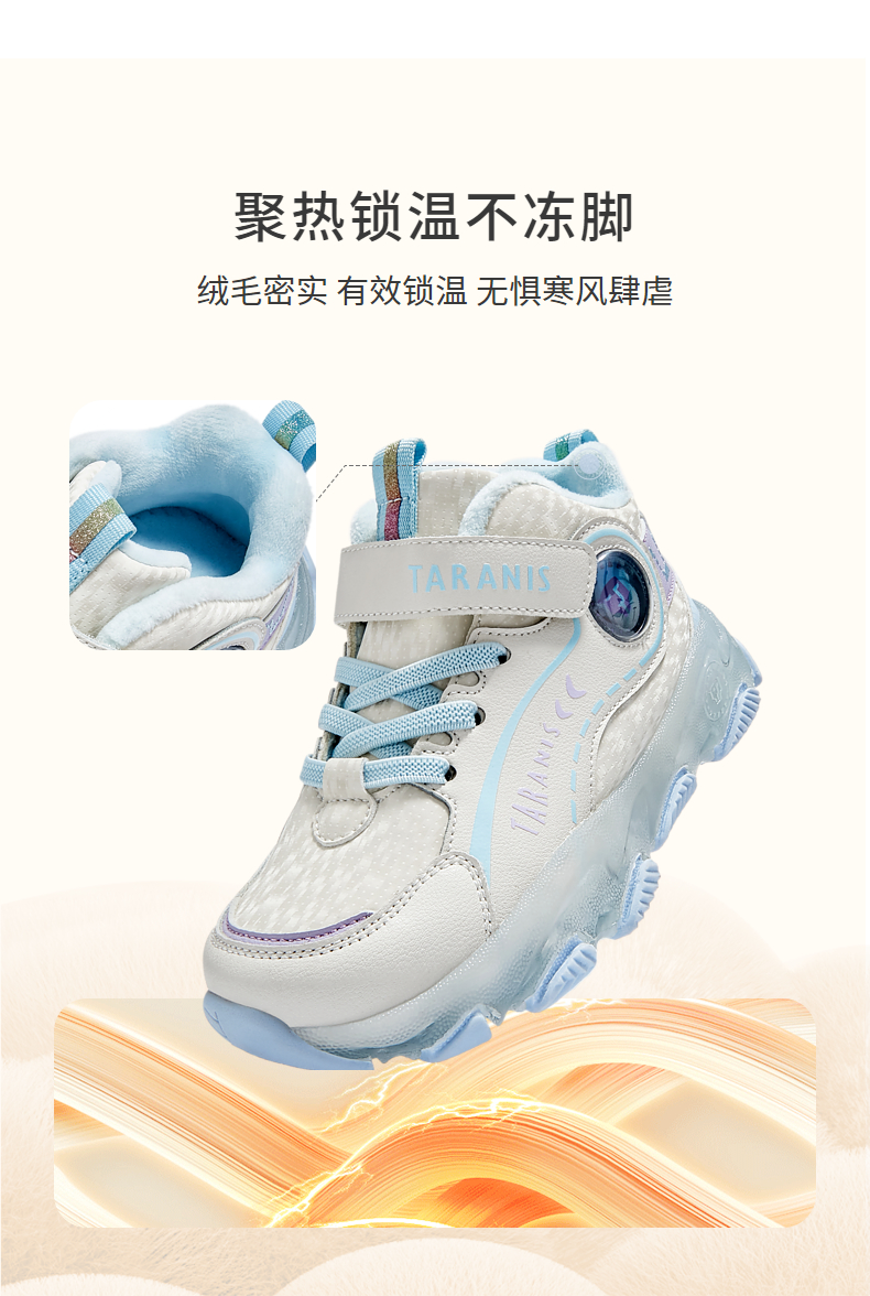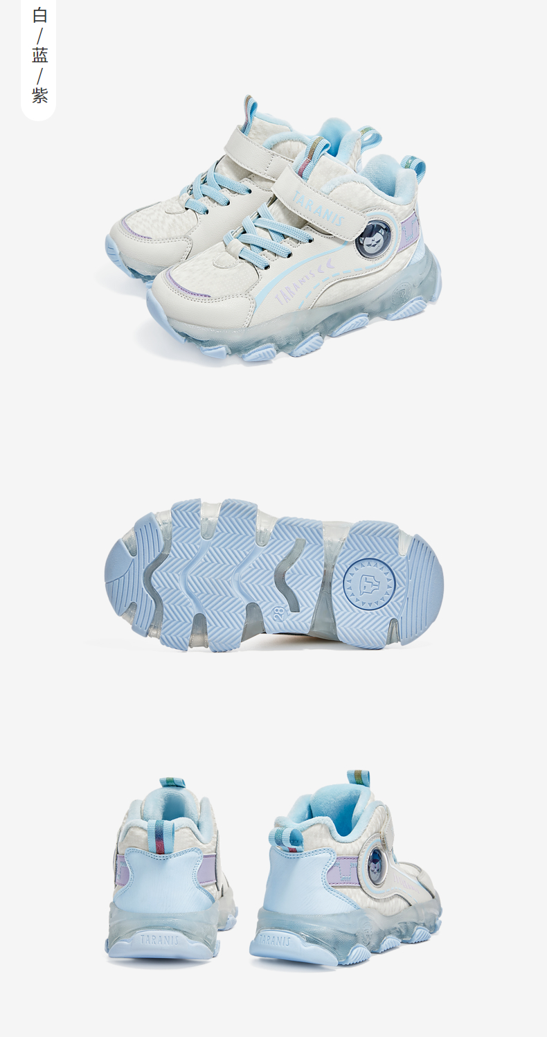 泰兰尼斯儿童冬季新款男童防踢防撞闪灯鞋女童加绒舒适保暖运动鞋 T01D3D3329