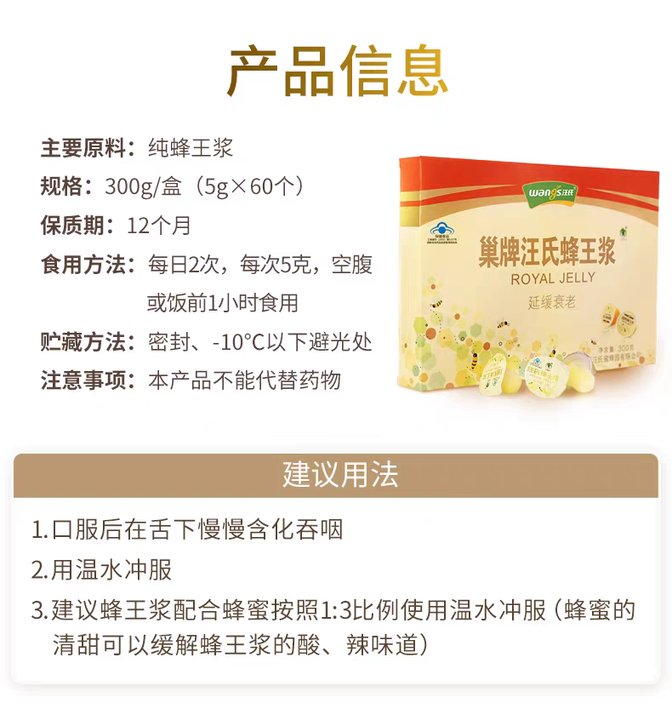 汪氏甄品蜂王浆300g/盒提升活力,精力旺盛