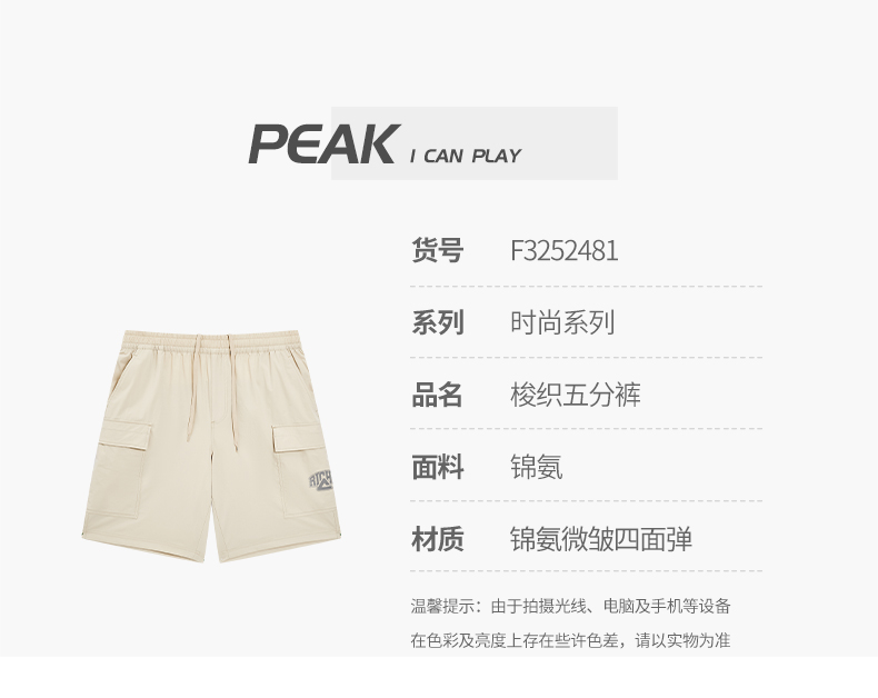 匹克2025年新款时尚系列男款梭织五分裤F3252481