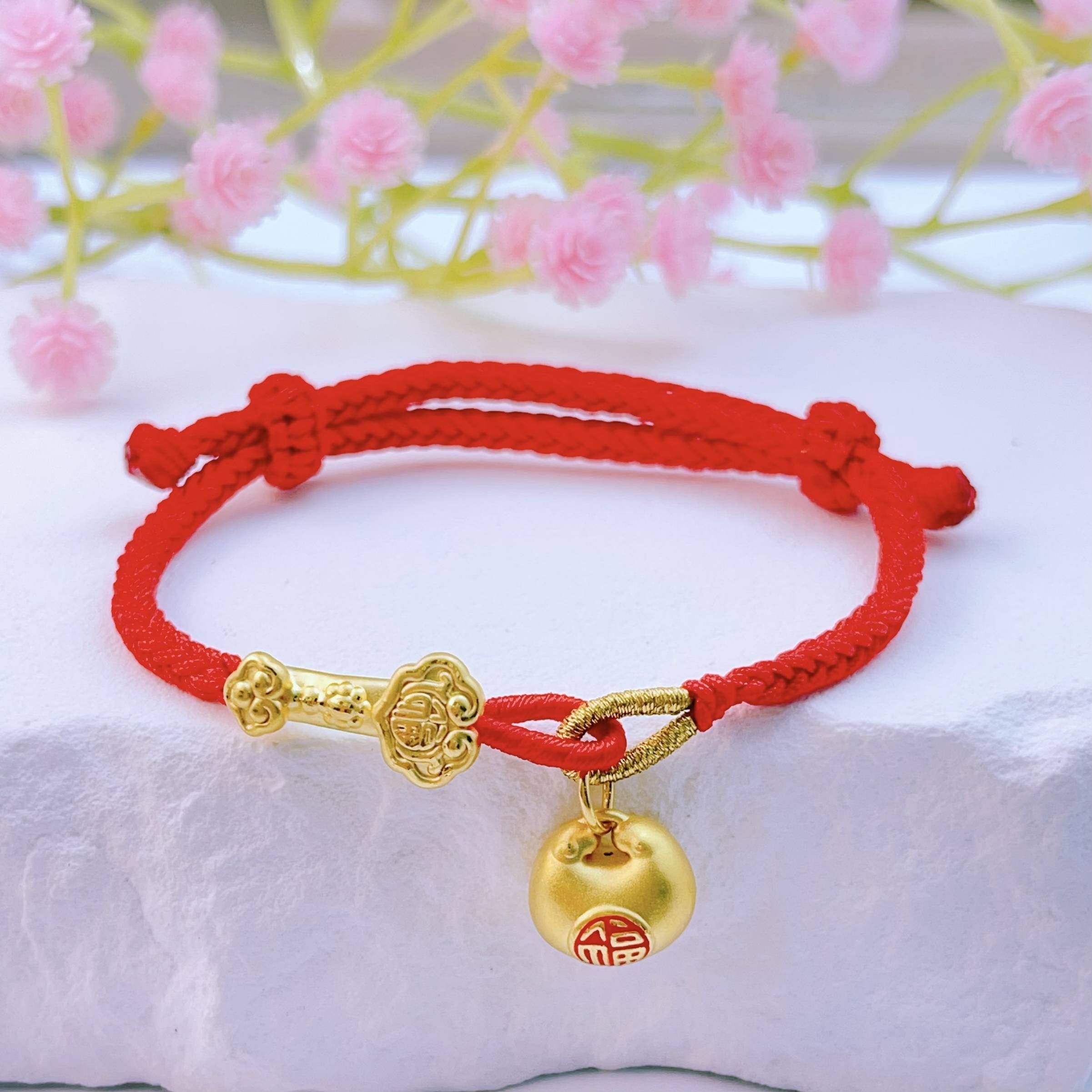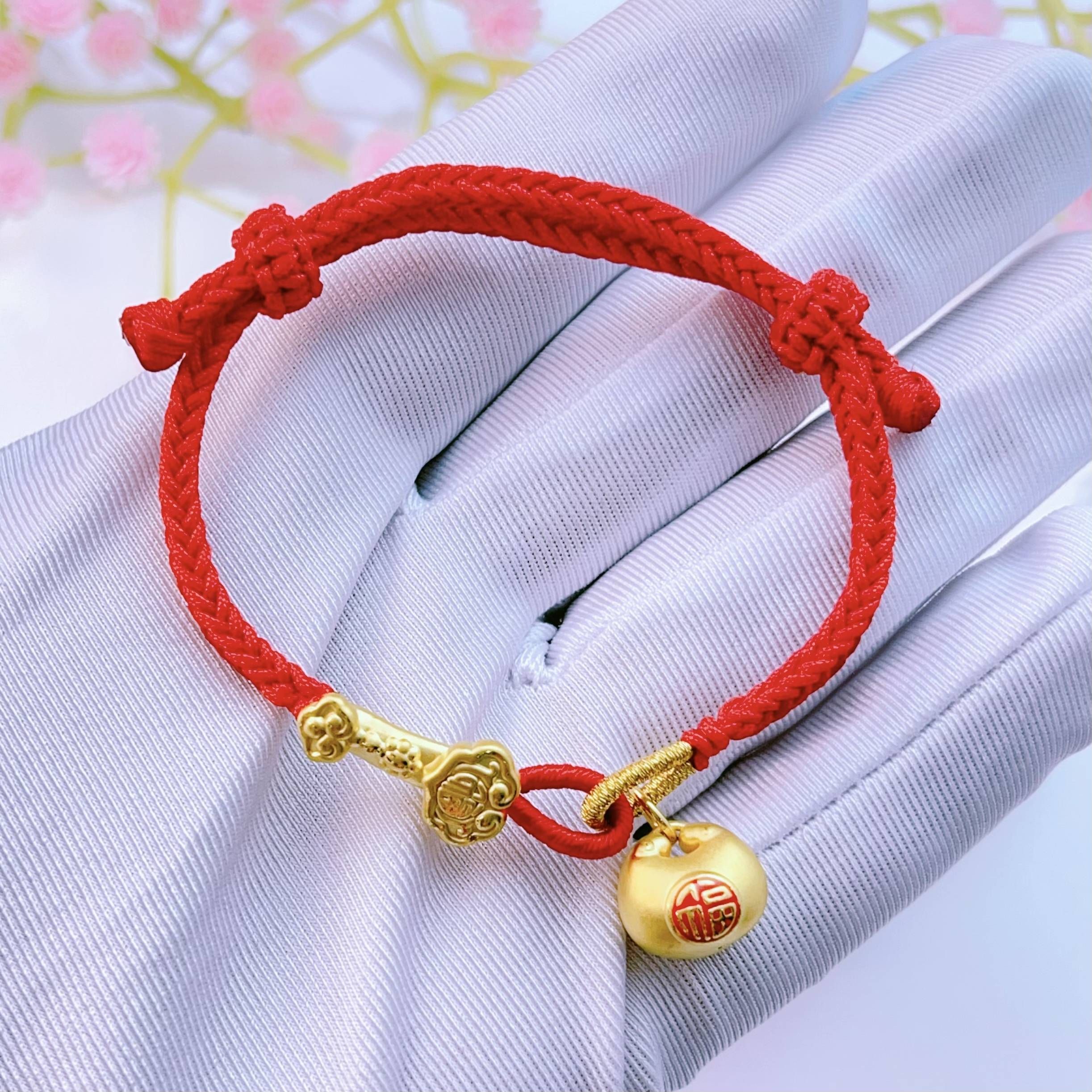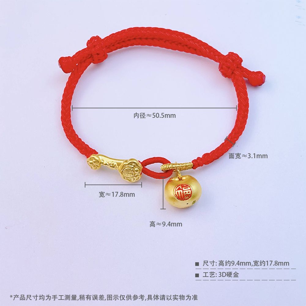 【限时7.5折】【定价黄金】足金 #小胖福 #小红书 3D硬金空心烤漆小胖福如意手串幸运红绳调节成品手串(AA3DSC00319)(预售产品下单后不退款不退货不换货不补差价)