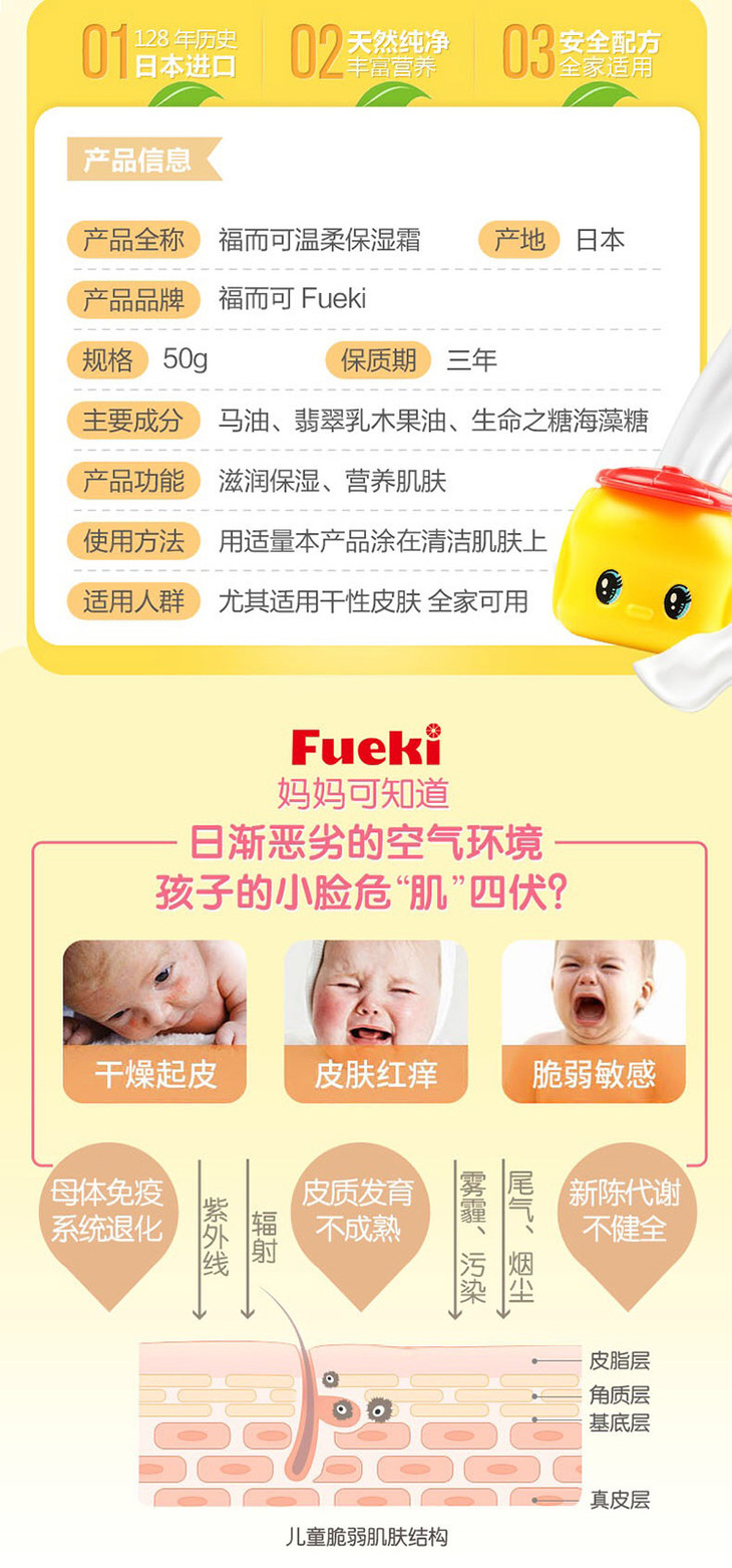 日本fueki福而可婴幼儿面霜小黄脸50g