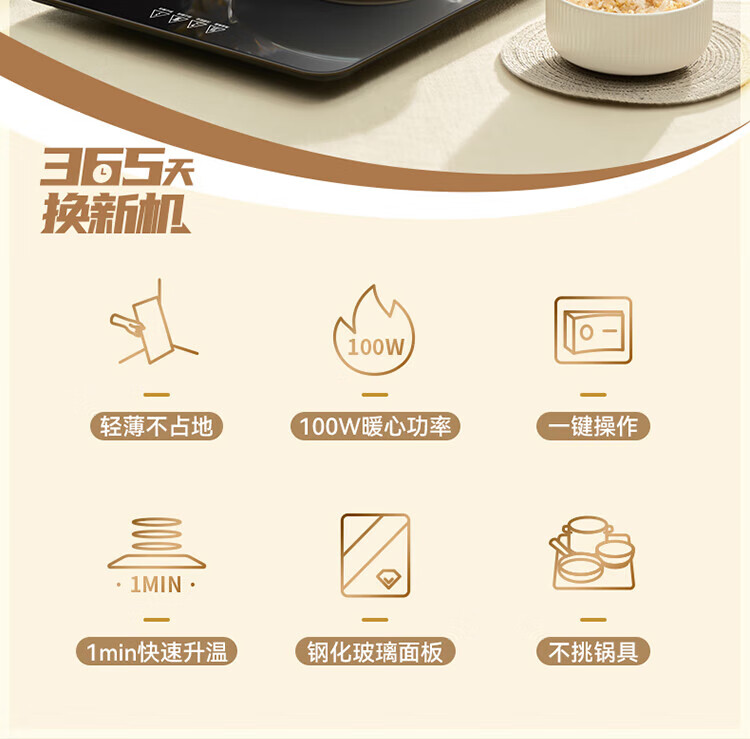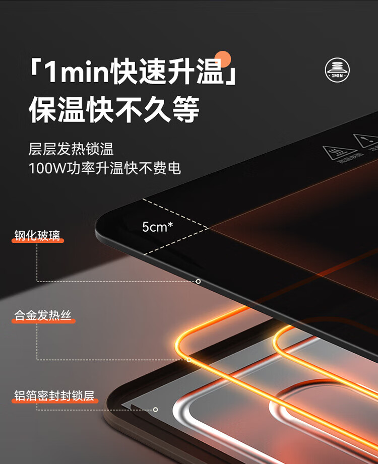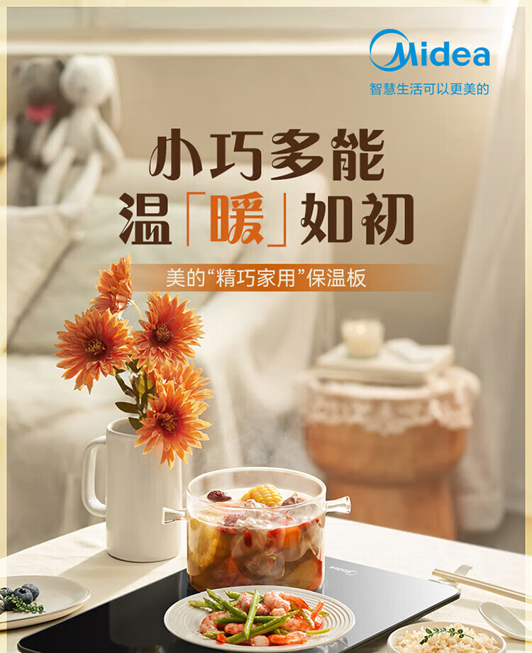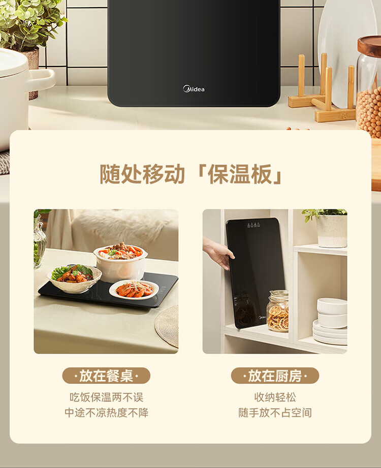 美的 BW01W1-015 饭菜保温板热菜板家用多功能智能恒温饭菜 精巧款可放2-3盘菜