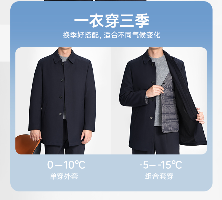 【中长款行政翻领羽绒夹克/清仓】 加厚保暖羽绒外套可拆卸内胆白鸭绒棉服夹克