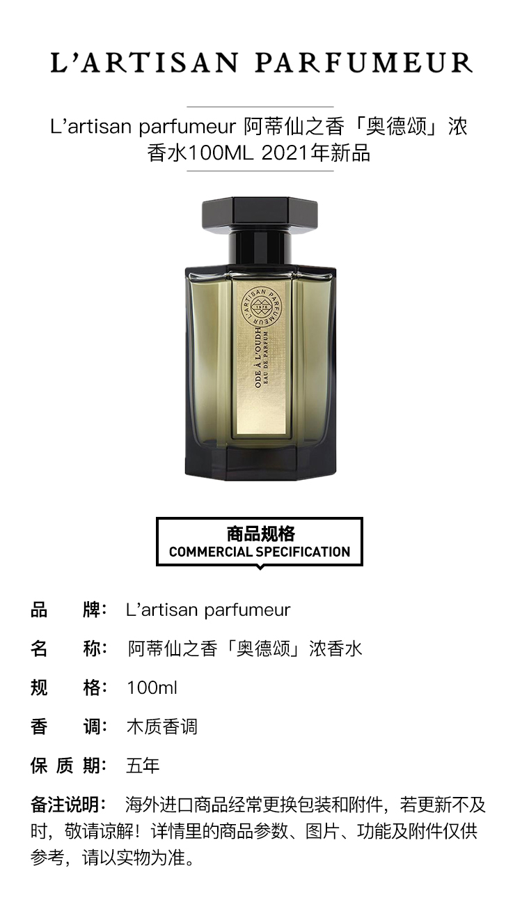 L'artisan parfumeur 阿蒂仙之香「奥德颂」浓香水100ml 2021年新品