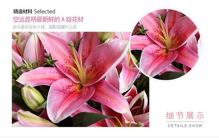 多头粉香水百合19朵,搭配适量叶上花