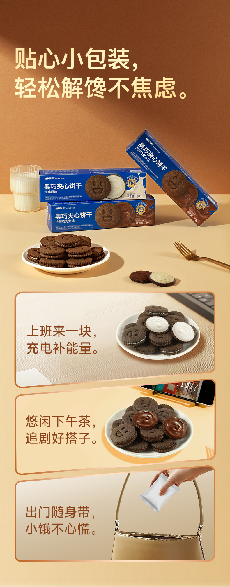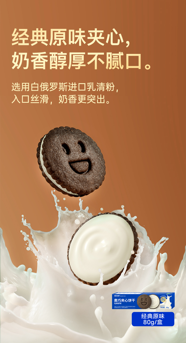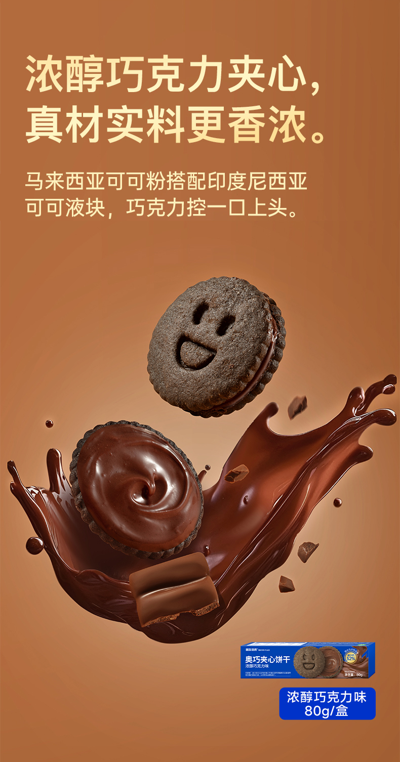 糖友厨房 奥巧夹心饼干巧克力味80g 多规格