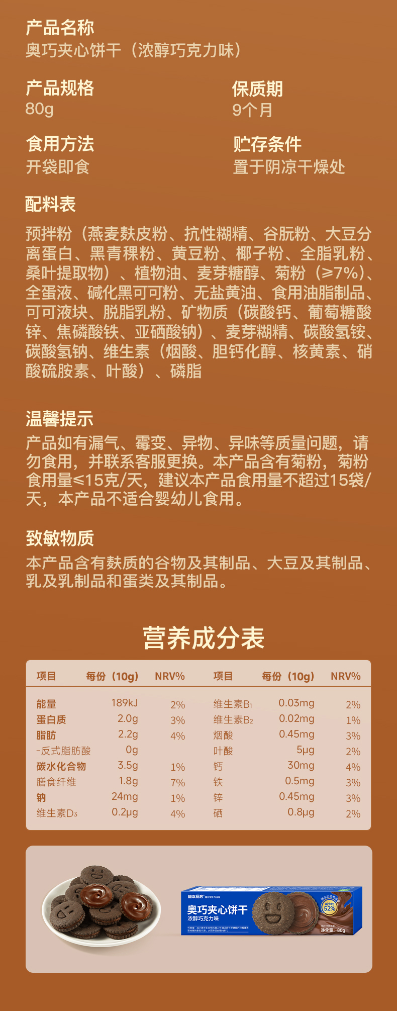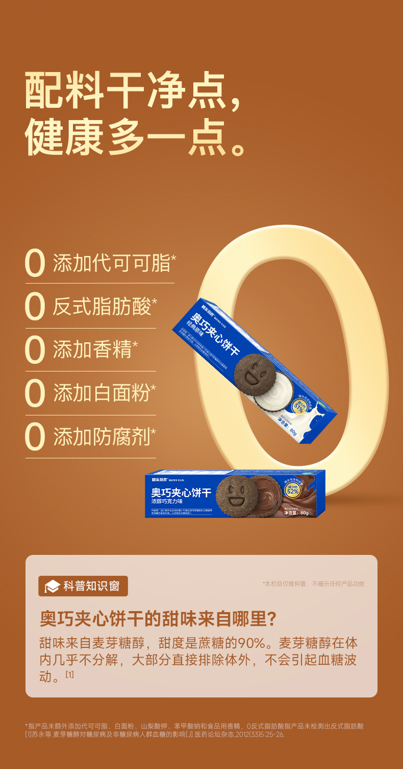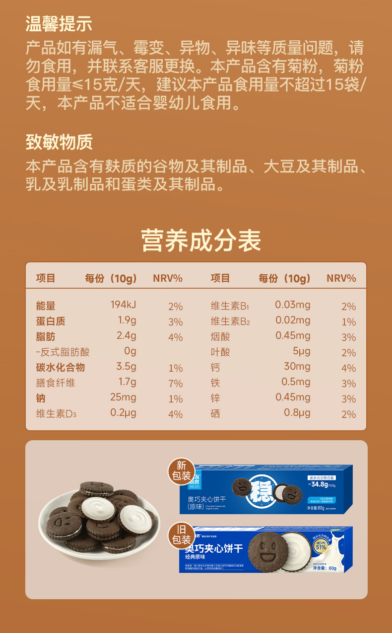 糖友厨房 奥巧夹心饼干巧克力味80g 多规格