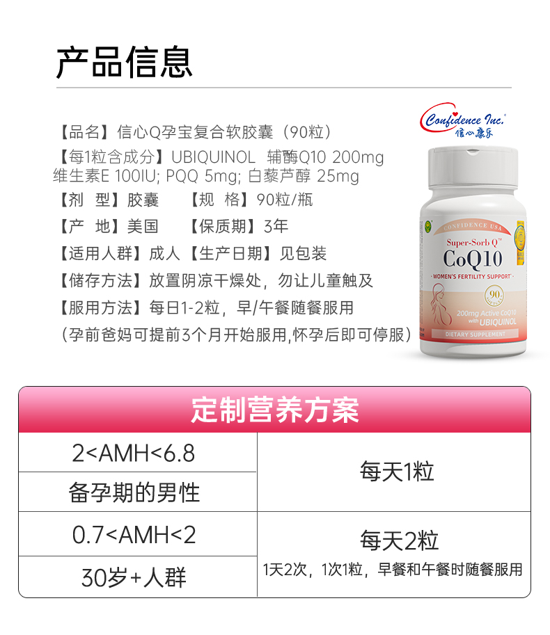 信心康乐辅酶q10孕还原型辅酶胶囊泛醇美国原装进口Q孕宝