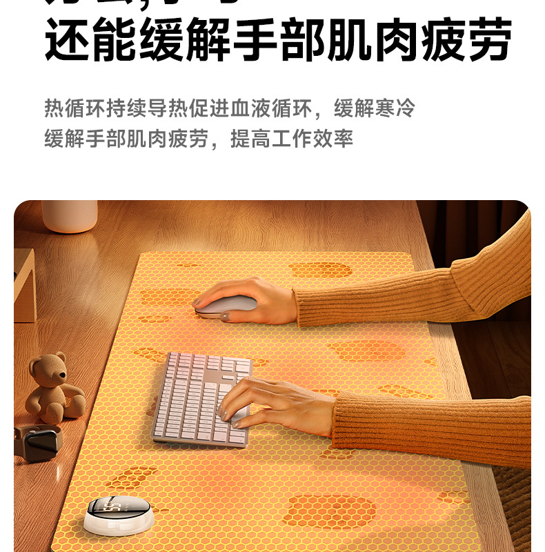 【智能数显暖桌垫】超大尺寸 桌面鼠标加热垫 键盘办公室恒温防水暖手垫