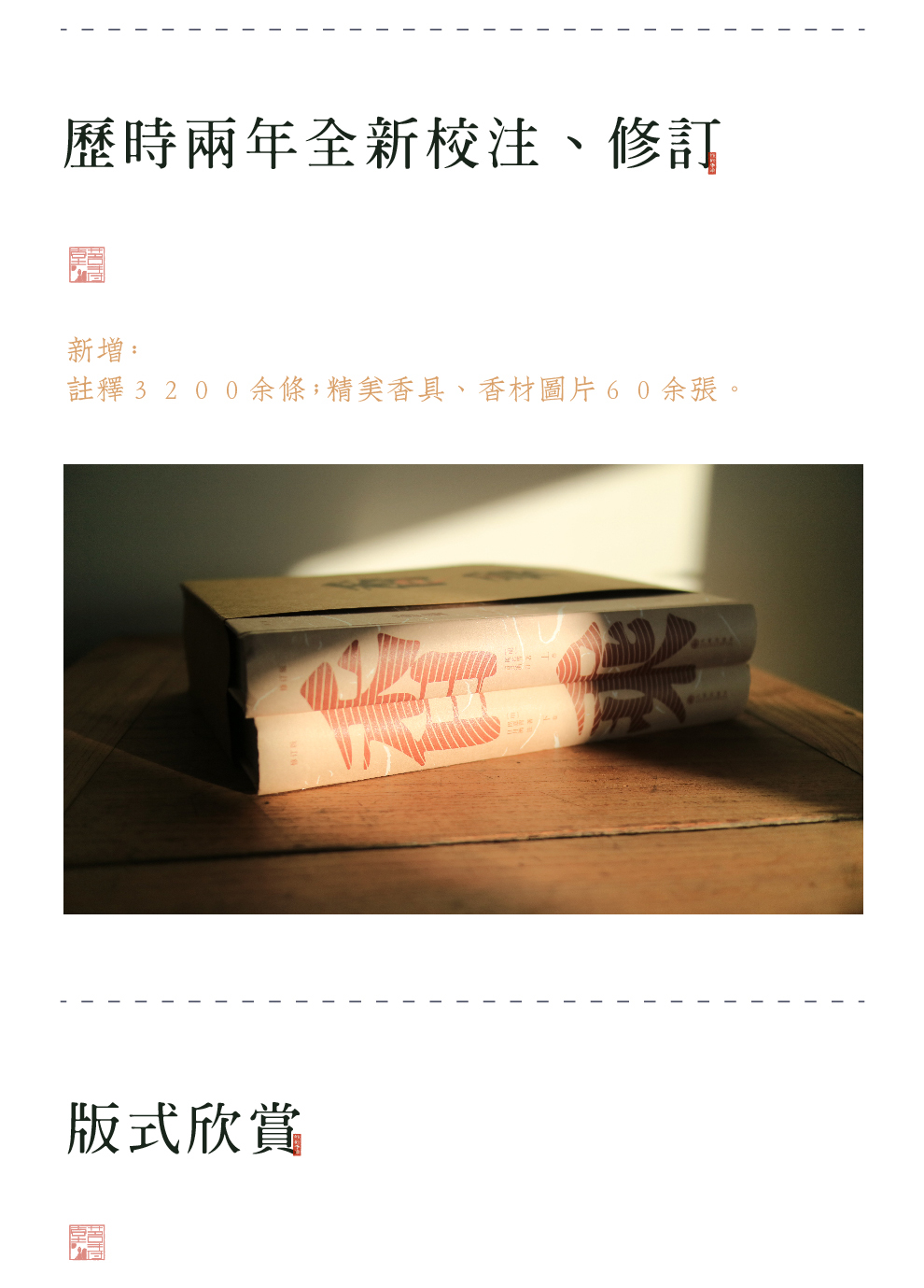 新版《香乘》详注 明洲签名版( 全二册 附索引一本)