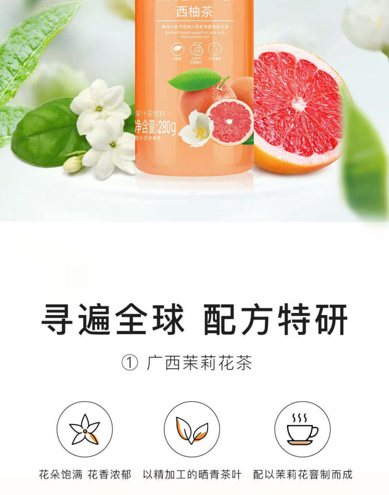 乐源西柚茶饮料280ml*8瓶