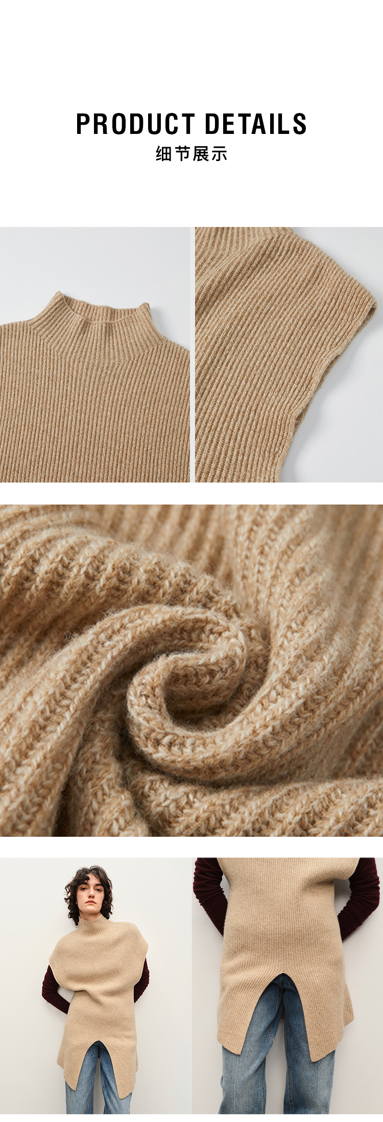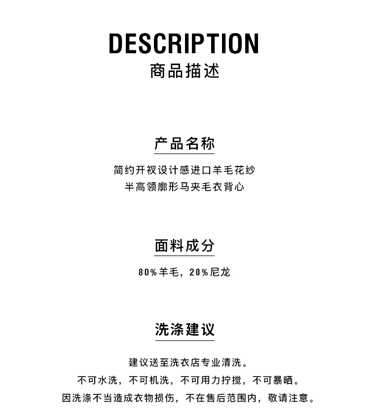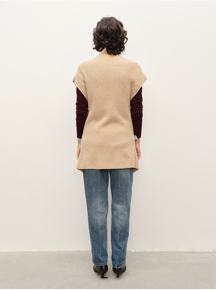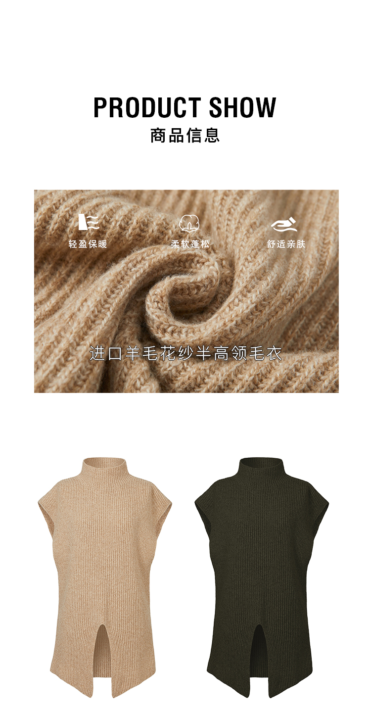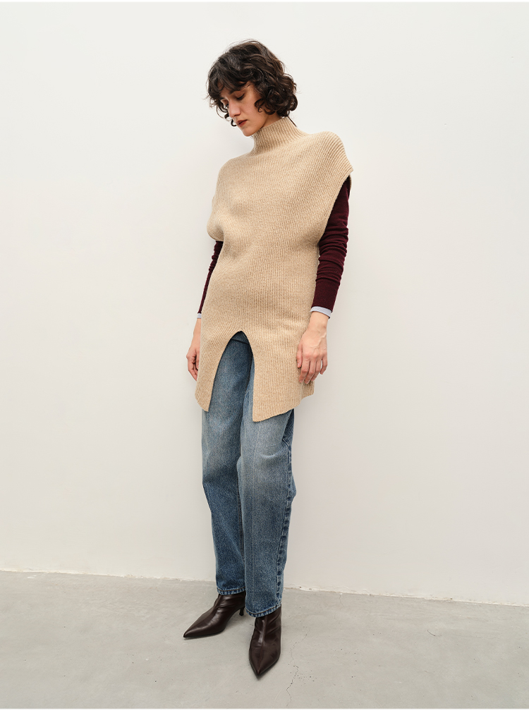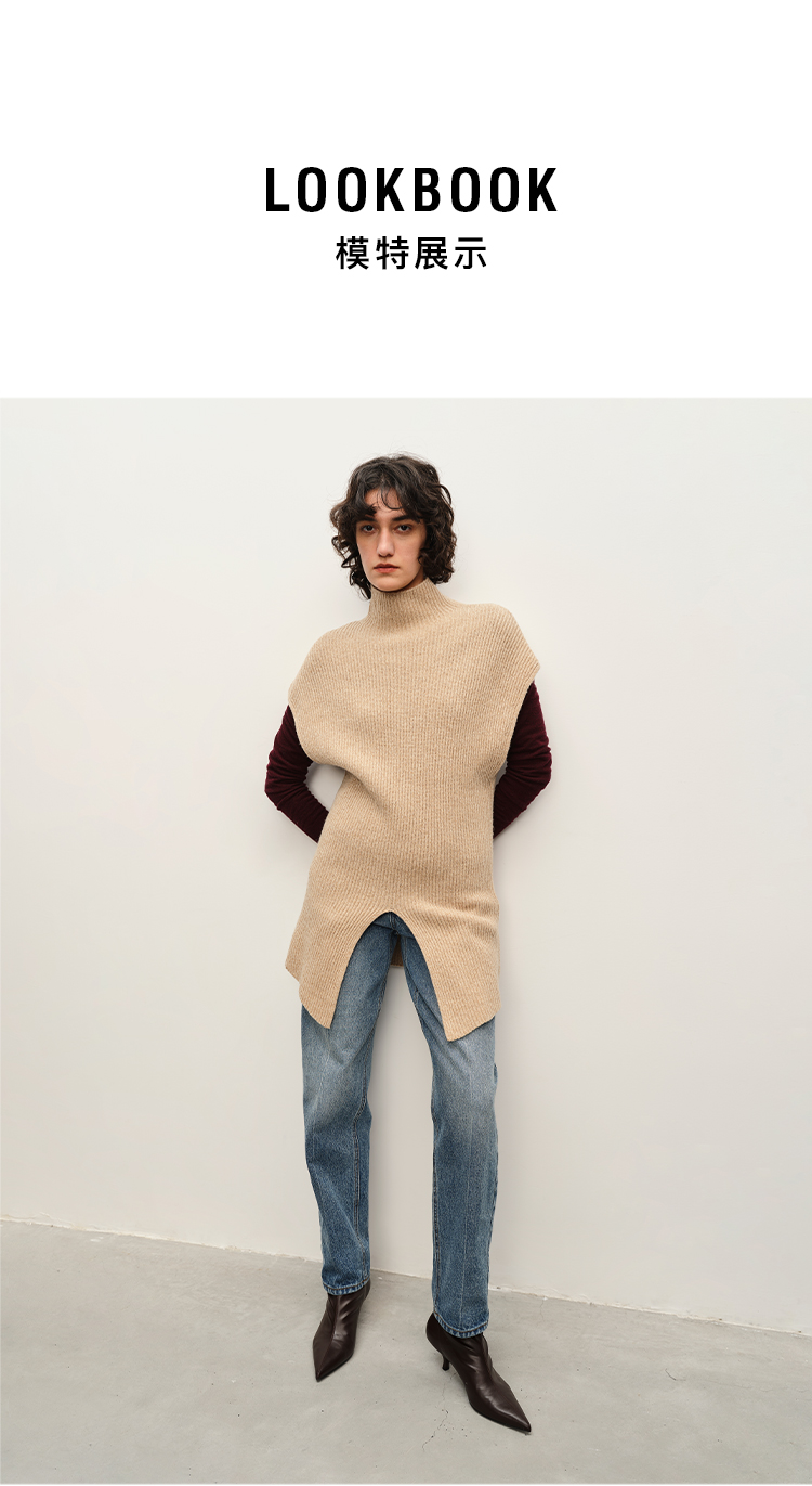 HIDEMI 简约开衩设计感进口羊毛花纱半 廓形多穿式马夹