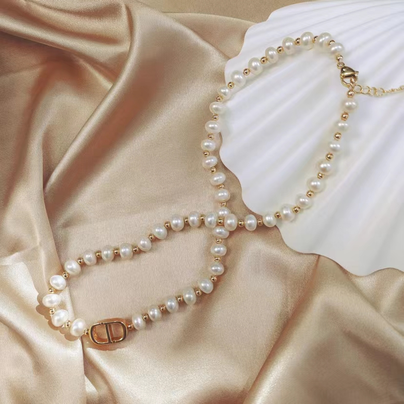 套盒(项链*1+手链*1) 1.18颗/48颗天然珍珠,20颗/50颗金隔珠。女神同款简约 气质款。 2.各种场合都能hold住,珠光宝气,优雅大方3.经典款式,万能百搭: 任何风格衣服,任何场合,高矮胖 瘦都能好看,不挑肤色不挑人 |
