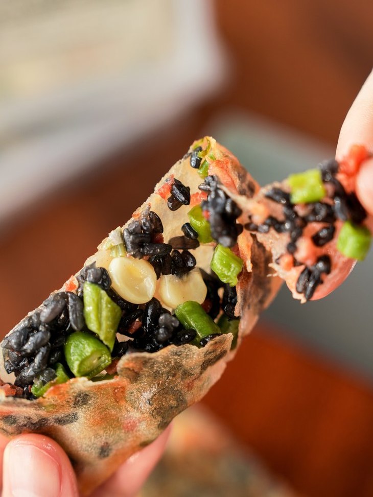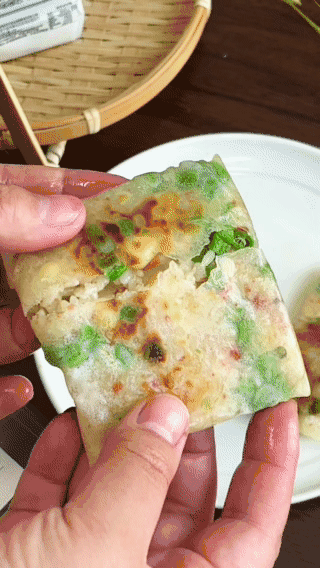 饼皮非常薄,肉眼可见翠绿的豇豆,外皮酥脆,鲜香味美!作为快手早餐,刚够一个人食用,饱腹感十足。可以放点辣酱,搭配一碗粥,舒服又落胃,又可以开启元气满满的一天啦