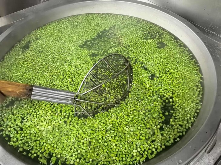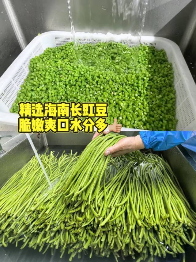 豇豆一定要选择细长脆嫩又翠绿的,海南的豇豆刚好满足了杨师傅选择的标准,而且海南温度高,一年四季都可以保证新鲜豇豆的生产,海南豇豆相比于其他地方的豇豆,水分充足,口感上特别脆嫩,咬起来有清脆的声音,而且纤维少,豆香味浓郁,非常适合制作馅料,是制作豇豆饼的优质选择!
