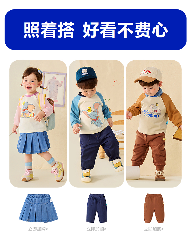 [小飞象]迷你巴拉男女宝宝长袖儿童长袖T恤卡通纯棉儿童上衣
